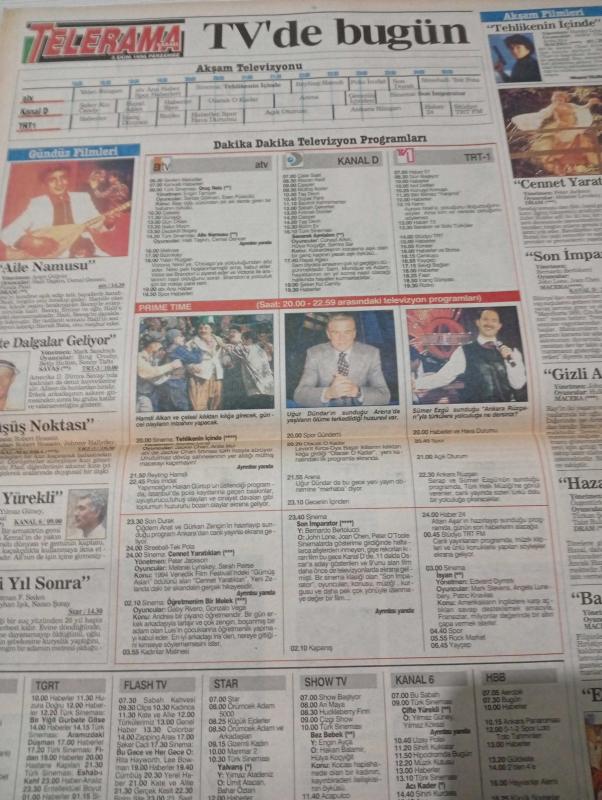 SABAH MELODİ GAZETESİ VE SABAH TELERAMA GAZETESİ KADINLARA ÖZEL - 3 ekim 1996 -Karikatürler-Walt Disney/Boncuk-Mort Walker-Dick Browne/Bizim Aile-Tom Armstrong/Marvin-Graham Allen-John Dodd/Kral Kedi-Süleyman Turan/Dön Artık-Astroloji-Bülent Kısa-Klinik-Meltem Pusat-Telerama Programı-Sabah Filmleri-Öğlen Filmleri-Akşam Filmleri- Elif urgu-erdoğan sevgin- ipek tenolcay- Mehmet Ali Erbil- nergis Kumbasar- Gönül yıldırım-murathan Taş- hamdi Alkan- uğur dündar-erdoğan sevgin- mahsun kırmızıgül-yasemin Koşal- lale oraloğlu-engin inal-funda bar'ın-ebru destan-arzu Atalay- savaş karakaş-esin moraloğlu- aram Gül yüz-halil taşkın-cemal gencer-funda Fırat- yılmaz güney-yılmaz köksal- Ayhan ışık-nazan Şoray- oya başar-levent Kırca- Sümer Ezgü- ali özgentürk-türkan şoray-talat Bulut adlı eser, Kitap > Süreli Yayınlar > Gazeteler > Türkiye > Genel > Günlük kategorisinde İkinci El olarak satıştadır.