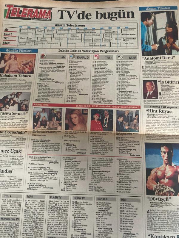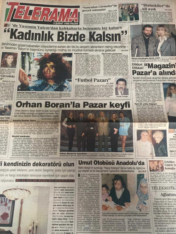 SABAH MELODİ GAZETESİ VE SABAH TELERAMA GAZETESİ KADINLARA ÖZEL - 4 Şubat 1996 -Karikatürler-Walt Disney/Boncuk-Mort Walker-Dick Browne/Bizim Aile-Tom Armstrong/Marvin-Graham Allen-John Dodd/Kral Kedi-Süleyman Turan/Dön Artık-Astroloji-Bülent Kısa-Klinik-Meltem Pusat-Telerama Programı-Sabah Filmleri-Öğlen Filmleri- Akşam Filmleri-Erdoğan Sevgin-Şerif Ercan-Okan Bayülgen-Emel Müftüoğlu-Seda Kaya Güler-Nako-Safilo Group-Ebru Kılıçoğlu-Selahattin Duman-Meltem Cumbul-Devriye-Bilge egemen-Ebru Keser-Orhan Boran-Home Dergisi-Gendekor ahşap-Metin Belgin-Mehmet Ali Erbil-Gülriz Sururi-Tarsus-Nurdan Torun-Rüya Ersavacı-İbrahım Erkal-Simra Kantarcıoğlu-Ebru Kantarcıoğlu-Yasemin Yalçın-Erman Toroğlu-Funda Barın-Magazin Forever-Kadınlık Bizde Kalsın-Yılmaz Erdoğan-Metin Serezli-Tülay Taşdöğen-Kenan Erçetingöz-Seda Sayan-Müşfik Kenter-Nastassia Kinskil-Charlie Sheen-Danny Aiello-Matthew Modine-Anatomi Dersi-Christine Lathi-Hababam Taburu-Müjdat Gezen-Figen Han-Çıldırasıya Sevmek-Claudia Christian adlı eser, Kitap > Süreli Yayınlar > Gazeteler > Türkiye > Genel > Günlük kategorisinde İkinci El olarak satıştadır.