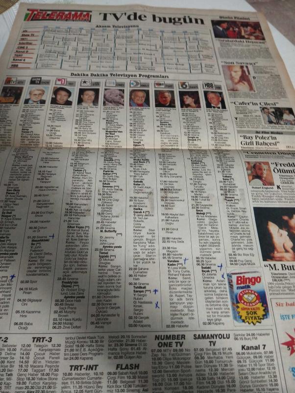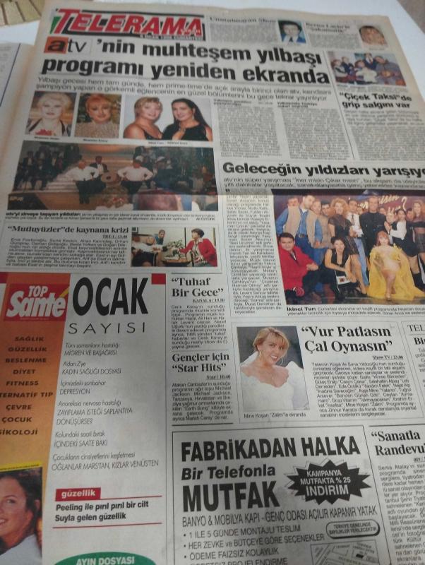 SABAH MELODİ GAZETESİ VE SABAH TELERAMA GAZETESİ KADINLARA ÖZEL - 6 Ocak 1996 -Karikatürler-Walt Disney/Boncuk-Mort Walker-Dick Browne/Bizim Aile-Tom Armstrong/Marvin-Graham Allen-John Dodd/Kral Kedi-Süleyman Turan/Dön Artık-Astroloji-Bülent Kısa-Klinik-Meltem Pusat-Telerama Programı-Sabah Filmleri-Öğlen Filmleri-Akşam Filmleri-Erdoğan Sevgin-eyvah-seda güler-sezen aksu -ruhun duymaz-yataş-muazzez abacı-muazzez ersoy-sibel can-nükhet duru-erol evgin-ali öztürk-mutlu yüzler-enis fosforluoğlu-suna keskin-alttan karındaş-orhan gümüşiyar-beste yelken-doğan ilerioğlu-erol evgin-berna laçin-şakamatik-Mine koşan-tuhaf bir gece-soner arıca-kemal sunal-akrep yuvası-cüneyt arkın-çiçek taksi-zeynep tunuslu-son savaşçı-kibar feyzo-türk sineması-cafer'in çilesi-sanat günlüğü-biz bize eğlence-fasıl adlı eser, Kitap > Süreli Yayınlar > Gazeteler > Türkiye > Genel > Günlük kategorisinde İkinci El olarak satıştadır.