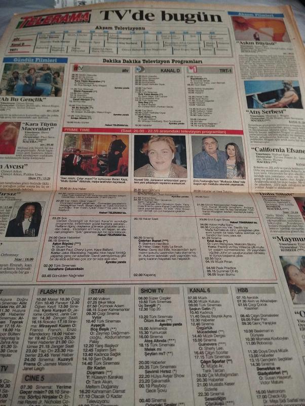 SABAH MELODİ GAZETESİ VE SABAH TELERAMA GAZETESİ KADINLARA ÖZEL - 6 Temmuz 1996 -Karikatürler-Walt Disney/Boncuk-Mort Walker-Dick Browne/Bizim Aile-Tom Armstrong/Marvin-Graham Allen-John Dodd/Kral Kedi-Süleyman Turan/Dön Artık-Astroloji-Bülent Kısa-Klinik-Meltem Pusat-Telerama Programı-Sabah Filmleri-Öğlen Filmleri-Akşam Filmleri-Erdoğan Sevgin-protesto-istanbul-tansu çiller-ankara-izmir-milletvekili-yonca Evcimik-sinan benginar-cenk torun seçildi çiçek dilligil-çılgın bediş-iner misin çıkar mısın-borankaya-mutlu günler-edip akbayram-erol Evgin show-uğur Mumcu-Yeşim salkım-Serdar ortaç-fatih erkoç-altın güvercin şarkı yarışması-hülya avşar-nurseli idiz-enis fosforoğlu-ölüm avcısı-cüneyt arkın-fulden uras-gülşen bubikoğlu-Mesut engin-ilhan daner-şemsiyen kaya-meral orhonsay-huzura doğru-türk sineması-çizgi film-süper kahramanlar-örümcek adam-yarış başlıyor-müjde ar-doya doya müzik-gençlerin seçtikleri-müzik kutusu-cumartesi klipleri-kapanış adlı eser, Kitap > Süreli Yayınlar > Gazeteler > Türkiye > Genel > Günlük kategorisinde İkinci El olarak satıştadır.