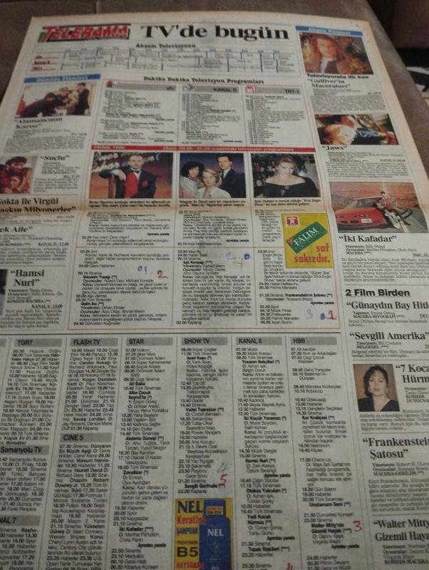 SABAH MELODİ GAZETESİ VE SABAH TELERAMA GAZETESİ KADINLARA ÖZEL - 7 Eylül 1996 -Karikatürler-Walt Disney/Boncuk-Mort Walker-Dick Browne/Bizim Aile-Tom Armstrong/Marvin-Graham Allen-John Dodd/Kral Kedi-Süleyman Turan/Dön Artık-Astroloji-Bülent Kısa-Klinik-Meltem Pusat-Telerama Programı-Sabah Filmleri-Öğlen Filmleri-Akşam Filmleri-Erdoğan Sevgin-İlknur menekşe-banvit-aydan çelen saç çizgi kas erimesi-özlem tekin-elif ergu-Cüneyt gökçer-şok-korcan karar-nurhayat kavrak-çiçek taksi-ajda pekkan-erol evgin-iner misin çıkar mısın-arzu atalay-macit şenkay-ayşegül devrim-mehmet bozkuş seçildi Nilgün belgün-mahmut cevher-enver demirhan-selim Erdoğan seçilge Perihan savaş-münir özkul-önder Açıkalın-Ayşen gruda-öztürk serengil-ana kuzusu-gülşen bubikoğlu-tarık tarcan-zeki alasya-tanju gürsu-hülya avşar-orhan abay-iki kafadar-haberler-böcek aile adlı eser, Kitap > Süreli Yayınlar > Gazeteler > Türkiye > Genel > Günlük kategorisinde İkinci El olarak satıştadır.