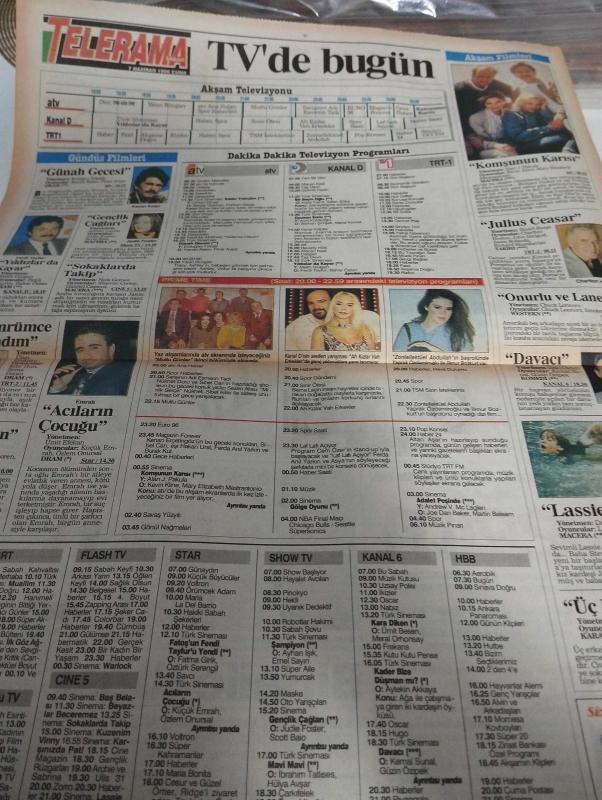 SABAH MELODİ GAZETESİ VE SABAH TELERAMA GAZETESİ KADINLARA ÖZEL - 7 Haziran 1996 -Karikatürler-Walt Disney/Boncuk-Mort Walker-Dick Browne/Bizim Aile-Tom Armstrong/Marvin-Graham Allen-John Dodd/Kral Kedi-Süleyman Turan/Dön Artık-Astroloji-Bülent Kısa-Klinik-Meltem Pusat-Telerama Programı-Sabah Filmleri-Öğlen Filmleri-Akşam Filmleri-Erdoğan Sevgin-habitat-eyşan özhim-merve İldeniz -arzum onan-aylin arasıl-seda güler-yemek-dean koontz-Nükhet duru-sibel can-sezen aksu-savaş karakaş-resim oralıoğlu-mustafa keser-özlem savaş-levent erim-güral doğan-aytunç görgün-ümit ziya-volkan gülhançı-bülent öztürk-ayşe kaya-yeşim özvaza-lale sayar-fatma özgün-ayşin özbek-ibrahim Tatlıses-Sinan benginar-üstün asutay-mutlu günler-hapkolik-teksoy görevde-levent kırca-oya Başar- Berna Laçin-yaprak özdemiroğlu-acıların çocuğu-emrah-özlem onursal-ediz hun-sema özcan-ferdi tayfur-bahar öztan-günah gecesi-kenan kalav-pınar Avşar-komşunun karısı-kemal sunal-güzin özipek-cesur ve güzel-türk sineması-örümcek adam adlı eser, Kitap > Süreli Yayınlar > Gazeteler > Türkiye > Genel > Günlük kategorisinde İkinci El olarak satıştadır.