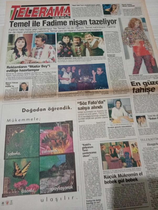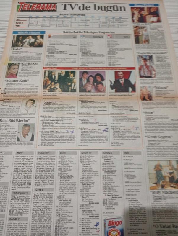 SABAH MELODİ GAZETESİ VE SABAH TELERAMA GAZETESİ KADINLARA ÖZEL - 8 ekim 1996 -Karikatürler-Walt Disney/Boncuk-Mort Walker-Dick Browne/Bizim Aile-Tom Armstrong/Marvin-Graham Allen-John Dodd/Kral Kedi-Süleyman Turan/Dön Artık-Astroloji-Bülent Kısa-Klinik-Meltem Pusat-Telerama Programı-Sabah Filmleri-Öğlen Filmleri- Akşam Filmleri- Elif ergu- Arzum Onan- mehmet Aslantuğ- Meral konrad-eşref Kolçak- berke hürcan-reha Yeprem- Yusuf sezgin-ali poyrazoğlu-erdoğan sevgin- Ali öztürk-mesut Yılmaz- Hülya koç-meltem Pusat- Önder Açıkalın kısa çiziliyor Memduh ün-tarık akan-perihan savaş-mehmet aslan-göksel Arif soy-nilgün Atılgan- türker inanoğlu-kartal tibet-filiz akın-melih gülcan-serdar gökhan-neşe Aksoy- adlı eser, Kitap > Süreli Yayınlar > Gazeteler > Türkiye > Genel > Günlük kategorisinde İkinci El olarak satıştadır.