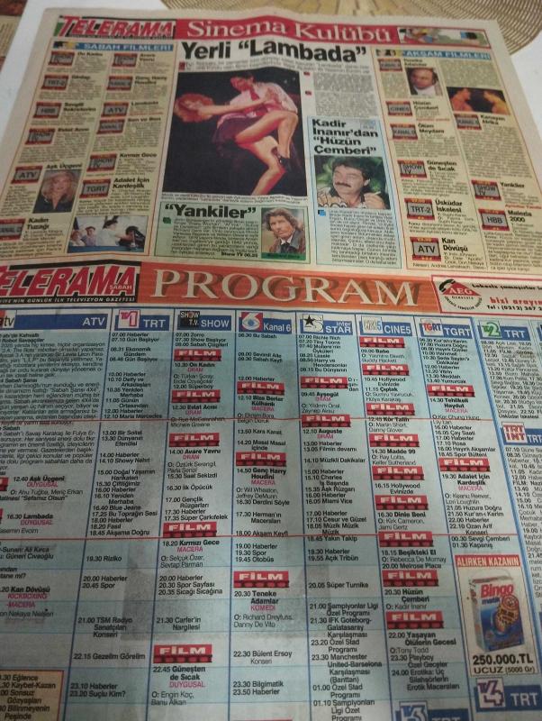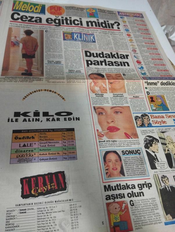 SABAH MELODİ GAZETESİ VE SABAH TELERAMA GAZETESİ KADINLARA ÖZEL GAZETESİ - 19 Ekim 1994 -Karikatürler-Walt Disney/Boncuk-Mort Walker-Dick Browne/Bizim Aile-Tom Armstrong/Marvin-Graham Allen-John Dodd/Kral Kedi-Süleyman Turan/Dön Artık-Astroloji-Bülent Kısa-Klinik-Meltem Pusat-Telerama Programı-Sabah Filmleri-Öğlen Filmleri-Akşam Filmleri-Erdoğan Sevgin-çiftetelli-belkıs akkale-kadınlar matinesi-bülent ersoy-yıldızlar geçidi-samim değer-savaş karakaş-mahsun kırmızıgül-demet sağıroğlu-yonca evcimik-ayşe emine-sibel barış-of aman nalan-Cenk koray-duygu asena-mehmet Ali erbil-erdal özyağcılar-bizimkiler-şehnaz tango-ali öztürk-ibret manzaraları-cem kurtoğlu-sıcağı sıcağına-Billur Kalkavan yeşilçam'da-yalan rüzgarı-türk sanat müziği-inci çayırlı-ela altın-nejat uygur-mevsim sonbahar-bedri Rahmi eyüboğlu-ulvi kırımlı-küçük konser-ceza eğitici midir-dudaklar parlasın-lambada-teneke adamlar-kan dövüşü-kadir inanır-ölüm meydanı-ahu tuğba-meriç erkan-sevgili sekreterim-kör talih-derdini söyle adlı eser, Kitap > Süreli Yayınlar > Gazeteler > Türkiye > Genel > Günlük kategorisinde İkinci El olarak satıştadır.