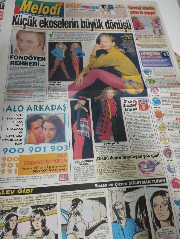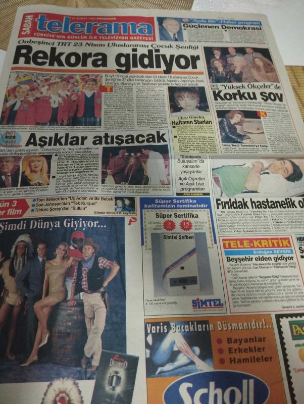 SABAH MELODİ GAZETESİ VE SABAH TELERAMA GAZETESİ KADINLARA ÖZEL GAZETESİ - 25 Şubat 1993 -Karikatürler-Walt Disney/Boncuk-Mort Walker-Dick Browne/Bizim Aile-Tom Armstrong/Marvin-Graham Allen-John Dodd/Kral Kedi-Süleyman Turan/Dön Artık-Astroloji-Bülent Kısa-Klinik-Meltem Pusat-Telerama Programı-Sabah Filmleri-Öğlen Filmleri-Akşam Filmleri-Erdoğan Sevgin-güçlenen demokrasi-süleyman demirel-oya araslı-metin heper-hasan köni-altan öymen-nazlı ılıcak-emin çölaşan-Bekir coşkun-kenan akın-yüksek ökçeler-leyla tekül-sevim tuna-gül erdal-selçuk ural-coşkun demir-erdoğan ersever-ergin konuksever-bülent oran-kerem toksat-ebru gündeş-fırıldak hastanelik oldu-peker açıkalın-ufuk yıldırım-çelik erişçi-istanbul büyükşehir belediye başkanı Nurettin sözen-barış manço-yorgun savaşçı-karayumruk-operadaki hayalet-günahımı çekeceksin-nuri sesigüzel-sevda ferdağ-şimdilik hoşça kal-sürgündeki kral-kara duvaklı gelin-türkan şoray-efkan efekan-bulut aras-öfke baldan tatlı mı-kadınlar okulu-nükhet adlı eser, Kitap > Süreli Yayınlar > Gazeteler > Türkiye > Genel > Günlük kategorisinde İkinci El olarak satıştadır.