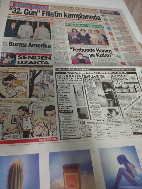 SABAH MELODİ GAZETESİ VE SABAH TELERAMA GAZETESİ KADINLARA ÖZEL GAZETESİ - 29 Mart 1993 -Karikatürler-Walt Disney/Boncuk-Mort Walker-Dick Browne/Bizim Aile-Tom Armstrong/Marvin-Graham Allen-John Dodd/Kral Kedi-Süleyman Turan/Dön Artık-Astroloji-Bülent Kısa-Klinik-Meltem Pusat-Telerama Programı-Sabah Filmleri-Öğlen Filmleri-Akşam Filmleri-Erdoğan Sevgin- Emma thompson-susan sarandon-michelle pfeiffer-iyi sendromu-özel ödül-32 gün-mehmet Ali birand-pazartesi kahkahaları-arkası yarın-ferhunde hanım-geçişleri bakanı İsmet sezgin-nükleer facia-utanıyorum-ferdi tayfur-nilgün akçaoğlu-bu ikiliye dikkat kısa çizgim Banu alkan-serpil çakmaklı-milyonerin kızı-türker inanoğlu-tamer yiğit-leyla tunca-zafer meydana-hesap günü-serdar gökhan-filistin kampları-burası amerika-hadi kırca-mithat bereket-kaddafi-sınav maratonu-eski mektuplar-mahallenin muhtarları-susam sokağı adlı eser, Kitap > Süreli Yayınlar > Gazeteler > Türkiye > Genel > Günlük kategorisinde İkinci El olarak satıştadır.