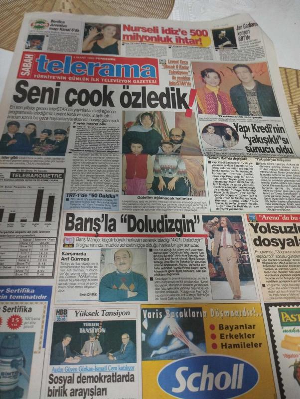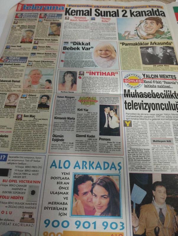 SABAH MELODİ GAZETESİ VE SABAH TELERAMA GAZETESİ KADINLARA ÖZEL GAZETESİ - 4 Mart 1993 -Karikatürler-Walt Disney/Boncuk-Mort Walker-Dick Browne/Bizim Aile-Tom Armstrong/Marvin-Graham Allen-John Dodd/Kral Kedi-Süleyman Turan/Dön Artık-Astroloji-Bülent Kısa-Klinik-Meltem Pusat-Telerama Programı-Sabah Filmleri-Öğlen Filmleri-Akşam Filmleri-Erdoğan Sevgin-Nurseli idiz-jan garbarek-kaan giritli-yapı kredi-tolga savacı-aylin livaneli-seni çok özledik-levent kırca-cem duna-Arif gürmen-barış manço-ünal erol-bakırköy muhtarı-arena ise çizgi Uğur dündar-ercüment konukman-mehmet çevik-göçmen evleri ihaleleri-yüksek tansiyon-aydın Güven gürkan-ismail Cem-Kemal sunal-hababam sınıfı tatilde-ertem eğilmez-münir özkul-boğaziçi şarkısı-nejat saydam-tamer yiğit-parmaklıklar arkasında-kartal tibet-hülya koçyiğit-suna yıldızoğlu-kederli günlerim-orhan aksoy-yalçın menteş-ideal doğum yaşı-havalar ondan sorulur-ercan erus-hülya Uğur-günaydın türkiye-stüdyoda buluşalım adlı eser, Kitap > Süreli Yayınlar > Gazeteler > Türkiye > Genel > Günlük kategorisinde İkinci El olarak satıştadır.