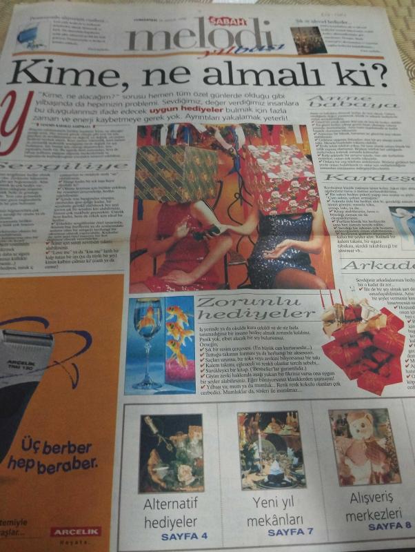 SABAH MELODİ YIlbaşı ALIŞVERİŞ GAZETESİ - 26 Aralık 1998 -İpek Ongun-Loreal Paris-Mimoza dergisi-Ebru Şallı-Leyla Tekül-Mert Ali Başarır-Prima Bebek Bezi-IsaDora-Rubinstein-Loreal Perfection-Bourjois-Estee Lauder-Lancome-Margaret Astor-Yataş Yatak-Pierre Cardin-Dufy Koleksiyonu-Marks&Spencer-Ermenegildo Zegna-Damat&Tween-Sarar-Halil&cupido-Şirin Sever-Philips-She dergisi-Jagler-alternatif hediyeler-yeni yıl mekanları-alışveriş merkezleri-yılbaşı şıklığı-konyalı-kardeşe-anne babaya-sevgiliye-uygun hediyeler-arçelik-yılbaşı armağanları seçildi pırıl pırıl bir yıl-parlak ve kışkırtıcı-erkeklere sürpriz hediye-akmerkez-toyota-favori-zamanı yakalayın-noel baba-mum-seçkin objeler-özgün ve evrensel eşyalar-nişantaşı-osmanlı kültürü-mim Kemal Öke caddesi-99-pişirme grubu-cezbedici mekanlar-londra-sarar-tüyap Tepebaşı -oyuncak arabaların cazibesi -zarif ve sportif -ipekyolu-pipo aksesuarları -mithat selection-şık hediyeler adlı eser, Kitap > Süreli Yayınlar > Gazeteler > Türkiye > Genel > Günlük kategorisinde İkinci El olarak satıştadır.