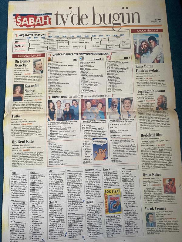 SABAH PAZAR MELODİ GAZETESİ VE SABAH TELERAMA GAZETESİ - 6 Nisan 1997 -Söyleyemedikleriniz-Süleyman Turan-Ah şu kocalar-Hale Pakcan-Mimi ile Muti-Patrıck Mc Donnel-Bizim Aile-Mort Walker-Dıck Browne-Marvın-Tom Amstrong-astroloji-Bugün ne yapalım-Erdoğan Sevgin-seda kaya Güler-Yılmaz Erdoğan-Jülide Ateş-Cemal Özgörkey—Volkan Severcan—Buket Dereoğlu-Lancome Paris-Elite Cosmetic-Diana ve Charles-Erol Evgin-emel Evgin-Aysun ve Ali Kocatepe çifti-reyting hamdi-an kuzusu-Esra Ceyhan-Meltem cumbul-Yılmaz morgül-Bendeniz-Suna yıldızoğlu-beko-bir demet menekşe-Zeki Ökten--Kartal Tibet-Hale Soygazi-Osman Seden-Hülya Avşar-Talat Bulut-Kenan kalav--Selin dilmen-şahane pazar, DİNÇ BİLGİN tarafından kaleme alınmıştır. SABAH PAZAR MELODİ GAZETESİ VE SABAH TELERAMA GAZETESİ - 6 Nisan 1997 -Söyleyemedikleriniz-Süleyman Turan-Ah şu kocalar-Hale Pakcan-Mimi ile Muti-Patrıck Mc Donnel-Bizim Aile-Mort Walker-Dıck Browne-Marvın-Tom Amstrong-astroloji-Bugün ne yapalım-Erdoğan Sevgin-seda kaya Güler-Yılmaz Erdoğan-Jülide Ateş-Cemal Özgörkey—Volkan Severcan—Buket Dereoğlu-Lancome Paris-Elite Cosmetic-Diana ve Charles-Erol Evgin-emel Evgin-Aysun ve Ali Kocatepe çifti-reyting hamdi-an kuzusu-Esra Ceyhan-Meltem cumbul-Yılmaz morgül-Bendeniz-Suna yıldızoğlu-beko-bir demet menekşe-Zeki Ökten--Kartal Tibet-Hale Soygazi-Osman Seden-Hülya Avşar-Talat Bulut-Kenan kalav--Selin dilmen-şahane pazar adlı eser Türkçe dilindedir.