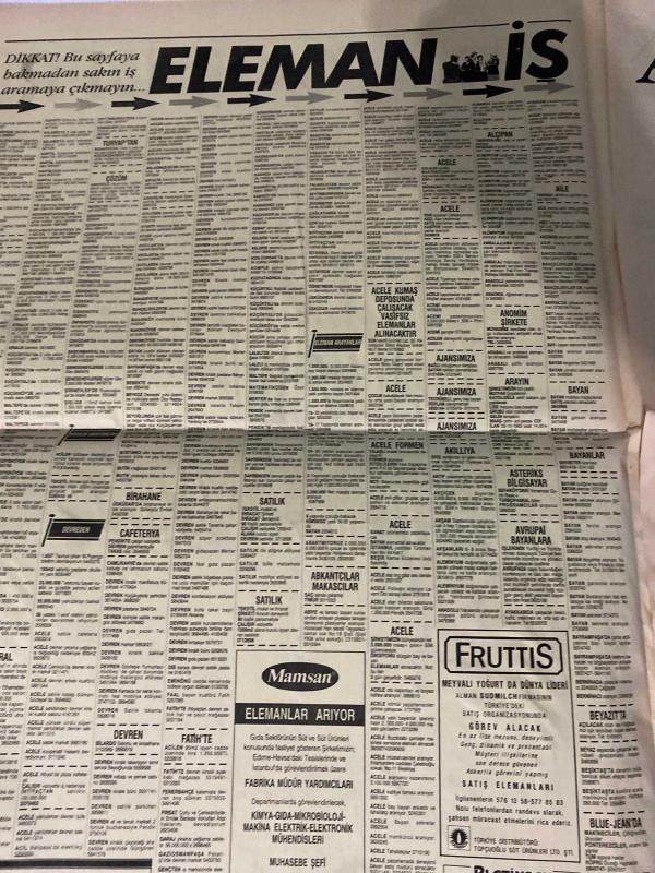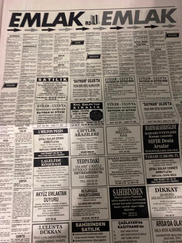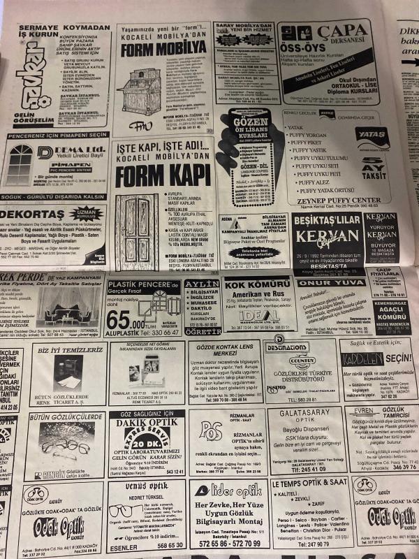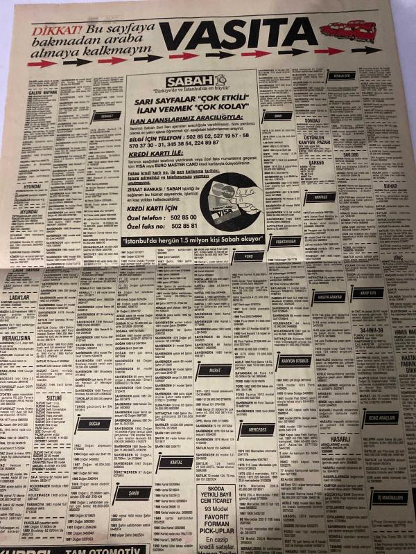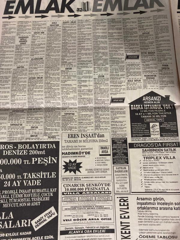 SABAH SARI SAYFALAR DOĞUM GÜNÜ GAZETESİ - 26 EYLÜL 1992 -Santral - Soydan Emlak - Sıntur - Turyaptan - Eren İnşaat - Çınarcık Şenköy - Veli Göçer Arsa Ofisi - Alanya Oba Evleri - Trans İnşaat - Raykent Evler - Form Kapı - Kocaeli Mobilya - Çapa Dershanesi - Gözön Ön Lisans Kursları - Yataş - Zeynep Puffy Center - Kerypan - DekorTaş - Erek Pvc - Uzman Alüminyum - Biz İyi Temizleriz - Gözde Kontak Lens Merkezi - Desanation - Kadilen - Dakis Optik - Galatasaray Optik - Evren Gözlük - Odak Optik - Venüs Optik - Lider Optik - Le Temps Optik & Saat - Murat Mobilya -sigorta-pazarlama satış-avukat-bilgisayar-nöbetçi eczaneler-dershaneler-iletişim-emlakçılar-bahçelievler-halkalı-güngören-fındıkzade-florya-fatih-eyüp-gümüşsuyu-kemerburgaz-kasımpaşa-küçükçekmece-levent-sarıyer-kurtuluş-koca Mustafa paşa-gaziosmanpaşa-beşiktaş-beyoğlu-etkiler-avcılar-yeni köyü-tarabya-şişlik-rumeli hisar-sarıyer-realty world-ümraniye-maltepe-kadıköy-kiralık arayanlar-satılık iş yeri-kemer-yakacık- adlı eser, Kitap > Süreli Yayınlar > Gazeteler > Türkiye > Genel > Günlük kategorisinde İkinci El olarak satıştadır.