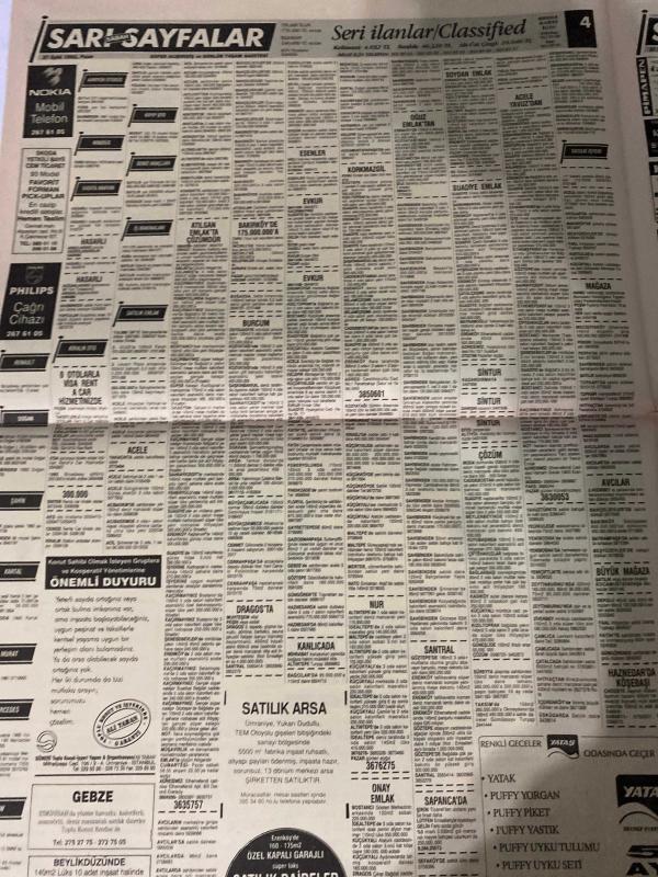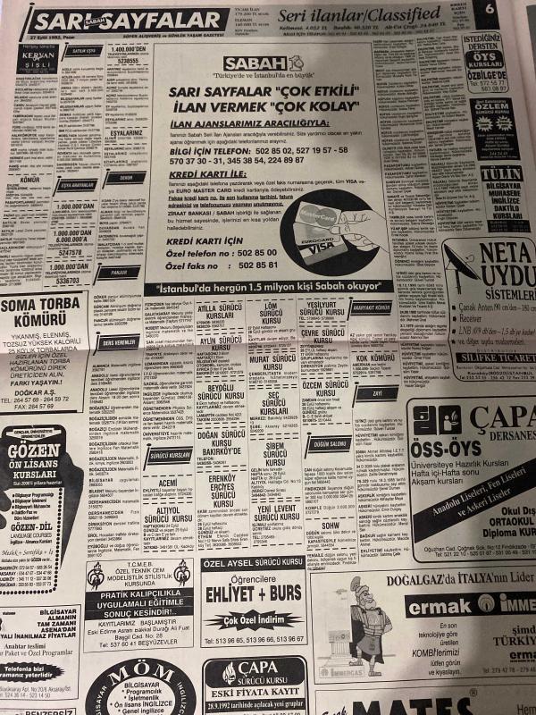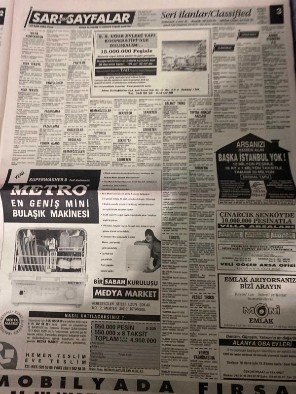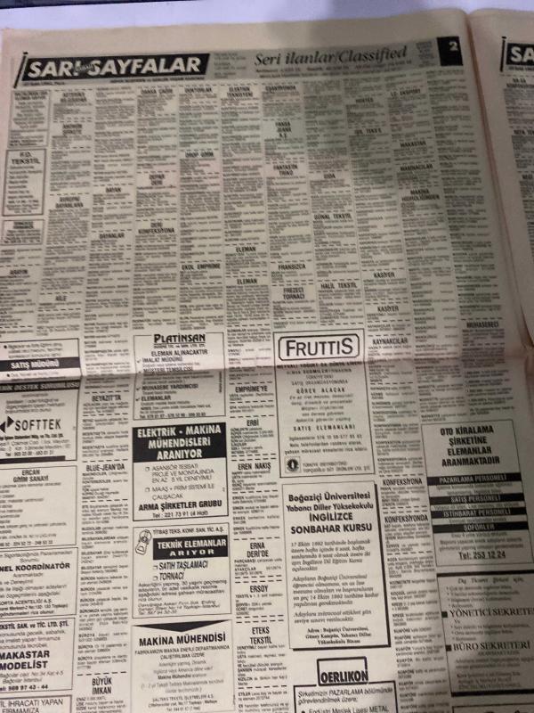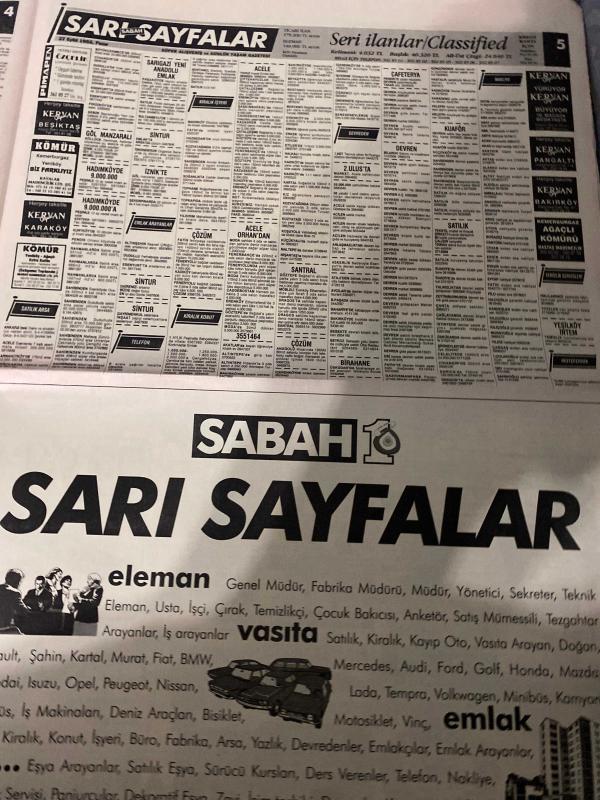 SABAH SARI SAYFALAR DOĞUM GÜNÜ GAZETESİ - 27 EYLÜL 1992 - Lider Şirketler Grubu - F.D. Tekstil - Softek - Ercan Gemi Sanayi - Rink Tekstil San. Tic. Ltd. Şti. - Arma Şirketler Grubu - Tetas Kes. Konf. San. Tic. A.Ş. - Fruttis - Eren Nakış - Erena Deri - Eteks Tekstil - Oerlikon - Serttaş Triko - Keriyan Emlak - Soma Torba Kömürü - Gözön Ön Lisans Kursları - Möm Bilgisayar - Özel Aysel Sürücü Kursu - Çapa Dershanesi - Ermak - Immergas - Mates -sigorta-pazarlama satış-avukat-bilgisayar-nöbetçi eczaneler-dershaneler-iletişim-emlakçılar-bahçelievler-halkalı-güngören-fındıkzade-florya-fatih-eyüp-gümüşsuyu-kemerburgaz-kasımpaşa-küçükçekmece-levent-sarıyer-kurtuluş-koca Mustafa paşa-gaziosmanpaşa-beşiktaş-beyoğlu-etkiler-avcılar-yeni köyü-tarabya-şişlik-rumeli hisar-sarıyer-realty world-ümraniye-maltepe-kadıköy-kiralık arayanlar-satılık iş yeri-kemer-yakacık- adlı eser, Kitap > Süreli Yayınlar > Gazeteler > Türkiye > Genel > Günlük kategorisinde İkinci El olarak satıştadır.