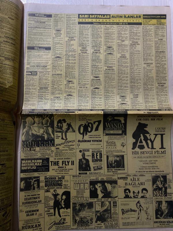 SABAH SARI SAYFALAR SERİ İLANLAR GAZETESİ DOĞUM GÜNÜ HEDİYESİ- 28 ARALIK 1989-sigorta-garson-mobilya-kuaför-Çocuk bakım-emlakçı-sağlık-tahsilatçı-şoför-temizlik elemanı-tezgahtar-tornacı-kasap-pastane-muhasebe-Beşiktaş-Beykoz-Alibeyköy-Bağcılar-Bakırköy-Gayrettepe-laleli-Levent-Gaziosmanpaşa-Fatih-Beşiktaş-Fındıkzade-Küçükçekmece-Ortaköy-Florya-Fulya- Üsküdar-Göztepe-Bağlarbaşı-Ataşehir-Yalova-Tuzla-Avcılar-Ulus-Merter-Anadoluhisarı-Tarabya-Sefaköy-yakacık-Suadiye-moda-kazasker-Maltepe-Kartal-Kalamış-Kadıköy-bostancı-akatlar Mecidiyeköy-Kocamustafapaşa-Çamlıca-Koşuyolu-Pendik-Kozyatağı-Ford-Mercedes-Citroen-BMW-Mazda-Kartal-Renault-Opel-Hüseyin Aslan-Ali Çapar-Jean Jacques Annaud McDonald’s’a 1 milyon ceza-Tecavüz değil isteyerek oldu-Zoraki anne boşanıyor-Bisiklet hırsızlarına üçer ay-Birer maaş ödül kazanan öğretmenlerin listesi-Sarı sayfalar altın ilanlar-Sinema vizyon filmleri-Ayı bir sevgi filmi adlı eser Türkçe dilindedir. Eserin içeriğinde Türkçe dilinde bölümlere de yer verilmektedir.