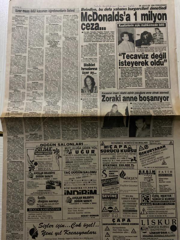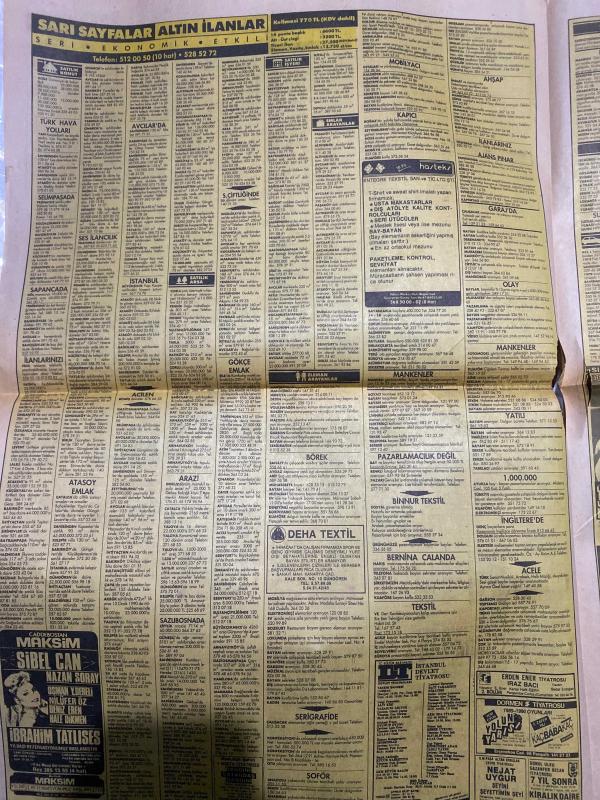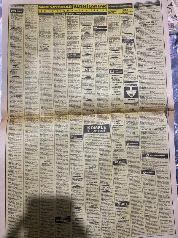 SABAH SARI SAYFALAR SERİ İLANLAR GAZETESİ DOĞUM GÜNÜ HEDİYESİ- 28 ARALIK 1989-sigorta-garson-mobilya-kuaför-Çocuk bakım-emlakçı-sağlık-tahsilatçı-şoför-temizlik elemanı-tezgahtar-tornacı-kasap-pastane-muhasebe-Beşiktaş-Beykoz-Alibeyköy-Bağcılar-Bakırköy-Gayrettepe-laleli-Levent-Gaziosmanpaşa-Fatih-Beşiktaş-Fındıkzade-Küçükçekmece-Ortaköy-Florya-Fulya- Üsküdar-Göztepe-Bağlarbaşı-Ataşehir-Yalova-Tuzla-Avcılar-Ulus-Merter-Anadoluhisarı-Tarabya-Sefaköy-yakacık-Suadiye-moda-kazasker-Maltepe-Kartal-Kalamış-Kadıköy-bostancı-akatlar Mecidiyeköy-Kocamustafapaşa-Çamlıca-Koşuyolu-Pendik-Kozyatağı-Ford-Mercedes-Citroen-BMW-Mazda-Kartal-Renault-Opel-Hüseyin Aslan-Ali Çapar-Jean Jacques Annaud McDonald’s’a 1 milyon ceza-Tecavüz değil isteyerek oldu-Zoraki anne boşanıyor-Bisiklet hırsızlarına üçer ay-Birer maaş ödül kazanan öğretmenlerin listesi-Sarı sayfalar altın ilanlar-Sinema vizyon filmleri-Ayı bir sevgi filmi adlı eser, Kitap > Süreli Yayınlar > Gazeteler > Türkiye > Genel > Günlük kategorisinde İkinci El olarak satıştadır.