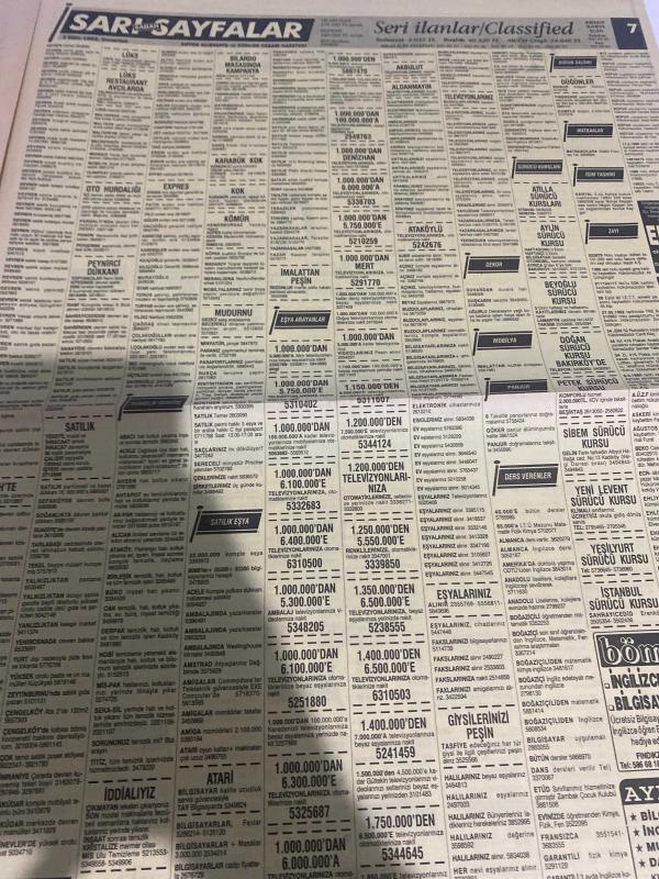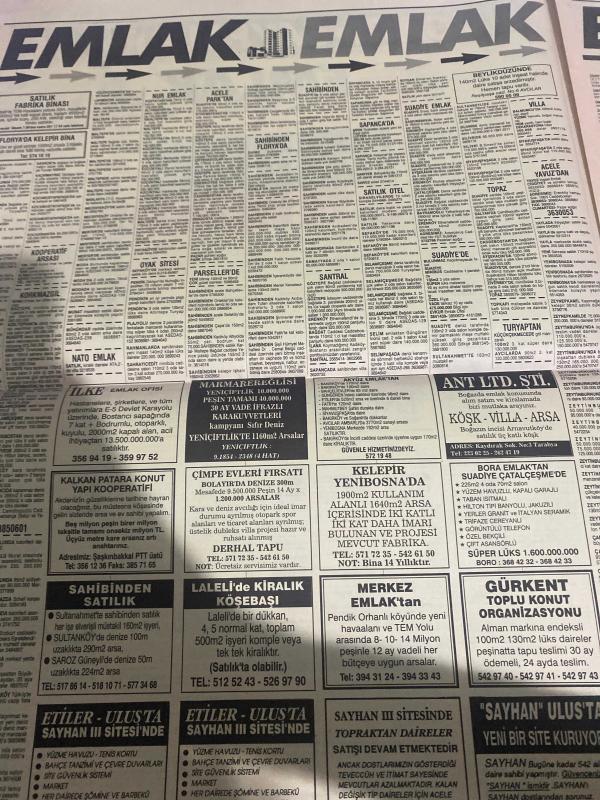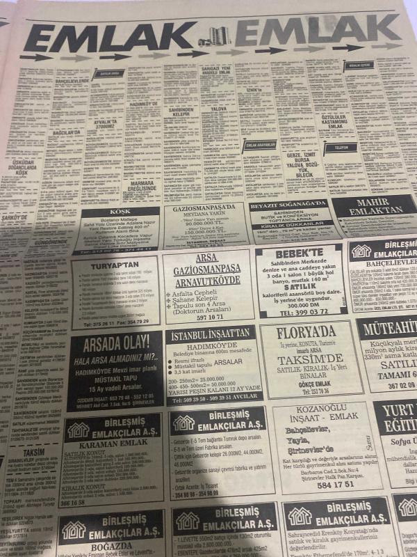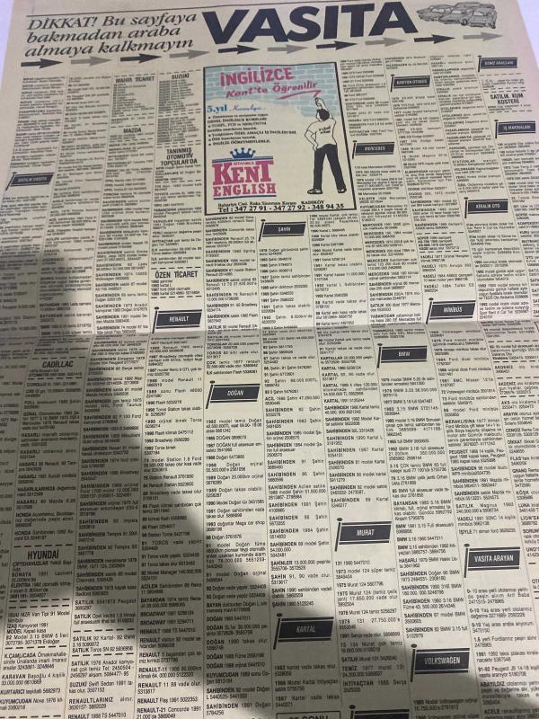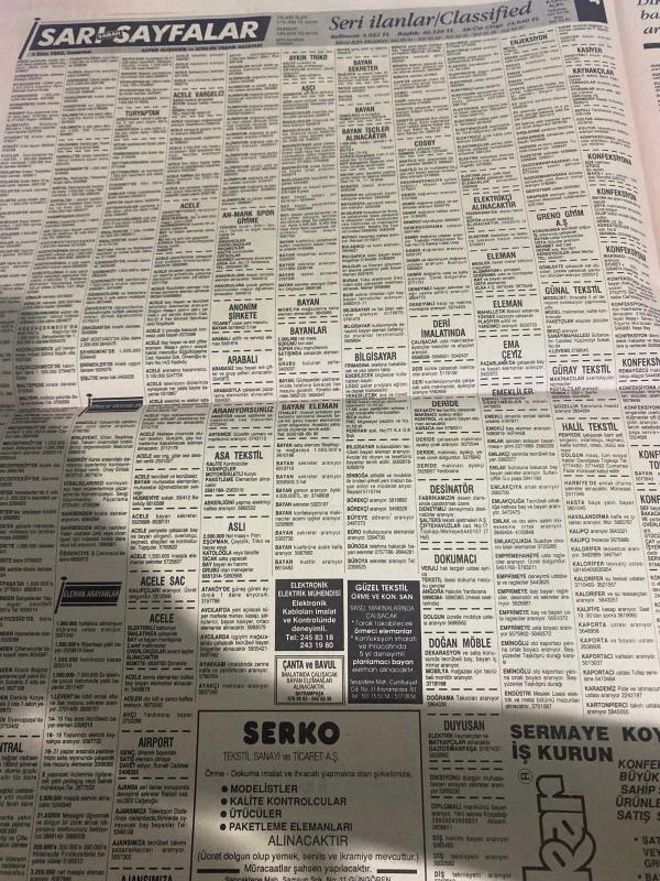 SABAH SARI SAYFALAR SERİ İLANLAR GAZETESİ DOĞUM GÜNÜ HEDİYESİ- 3 EKİM 1992-DİLKO english-ıntercom-kalkan patara konut-ilke emlak-birleşmiş emlakçılar-Gürkan toplu konut organizasyonu-Özdemir inşaat-Mahir emlak-form mobilya-Serko Tekstil-Tarhan plastik Sanayi-alacalı Tekstil-lider Şirketler grubu-Aylin bilgisayar-kervan çeyiz-kent İngilizce-sigorta-garson-mobilya-kuaför-Çocuk bakım-emlakçı-sağlık-tahsilatçı-şoför-temizlik elemanı-tezgahtar-tornacı-kasap-pastane-muhasebe-Beşiktaş-Beykoz-Alibeyköy-Bağcılar-Bakırköy-Gayrettepe-laleli-Levent-Gaziosmanpaşa-Fatih-Beşiktaş-Fındıkzade-Küçükçekmece-Ortaköy-Florya-Fulya- Üsküdar-Göztepe-Bağlarbaşı-Ataşehir-Yalova-Tuzla-Avcılar-Ulus-Merter-Anadoluhisarı-Tarabya-Sefaköy-yakacık-Suadiye-moda-kazasker-Maltepe-Kartal-Kalamış-Kadıköy-bostancı-akatlar Mecidiyeköy-Kocamustafapaşa-Çamlıca-Koşuyolu-Pendik-Kozyatağı-Ford-Mercedes-Citroen-BMW-Mazda-Kartal adlı eser, Kitap > Süreli Yayınlar > Gazeteler > Türkiye > Genel > Günlük kategorisinde İkinci El olarak satıştadır.