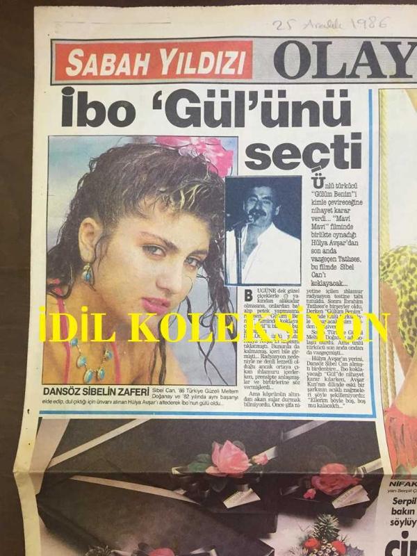 SABAH YILDIZI GAZETESİ - 25 ARALIK 1986 - İBO GÜL'ÜNÜ SEÇTİ - DANSÖZ SİBEL CAN'IN ZAFERİ, İBRAHİM TATLISES & SİBEL CAN - SERPİL ÇAKMAKLI - BURHAN ÇAÇAN & BAHAR ÖZTAN - MELEK GÜRKAN, YÜKSEL UZEL, YASEMİN KUTSİ - ATİLLA KARSAN - KÜÇÜK SONGÜL'Ü SEKS SEMBOLÜ YAPTILAR - NURGÜL KAYA - MUSTAFA ALABORA, CELİLE TOYON - NİLGÜN SARAYLI FOTOĞRAFI - SİYAHLI KADININ GECESİ adlı eser Türkçe dilindedir.