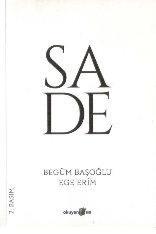 SADE, Begüm Başoğlu-Ege Erım tarafından kaleme alınmıştır. Kitap 2015 yılında Okuyan us tarafından [İSTANBUL] yayınlanmıştır. 166 sayfadır. SADE adlı eser Türkçe dilindedir.