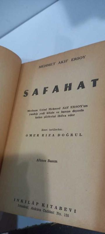 SAFAHAT (Türkçe 6. Baskı), MEHMET AKİF ERSOY tarafından kaleme alınmıştır. Eser ÖMER RIZA DOĞRUL editörlüğünde hazırlanmıştır. Kitap 1963 yılında İnkılap ve Aka tarafından [İstanbul] yayınlanmıştır. Bu baskının çevirisi ÖMER RIZA DOĞRUL tarafından yapılmıştır. SAFAHAT (Türkçe 6. Baskı) adlı eser Türkçe dilindedir.