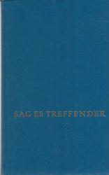 SAG ES TREFFENDER ein wörterbuch für alle, die taglichdiktieren und schreiben, A.M. TEXTOR tarafından kaleme alınmıştır. Kitap 1973 yılında [GERMANY] yayınlanmıştır. 366 sayfadır. SAG ES TREFFENDER ein wörterbuch für alle, die taglichdiktieren und schreiben adlı eser Almanca dilindedir.
