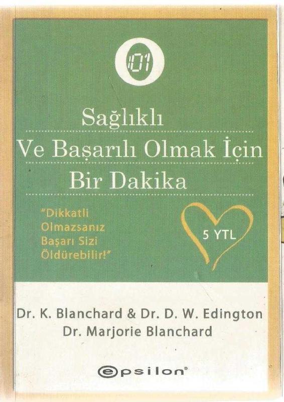 SAĞLIKLI VE BAŞARILI OLMAK İÇİN BİR DAKİKA, K.BLANCHARD&D.W.EDİNGTON&MARJORİE tarafından kaleme alınmıştır. Kitap 2008 yılında EPSİLON YAYINLARI tarafından [İSTANBUL] yayınlanmıştır. Bu baskının çevirisi MELEK ŞEN tarafından yapılmıştır. 192 sayfadır. SAĞLIKLI VE BAŞARILI OLMAK İÇİN BİR DAKİKA adlı eser Türkçe dilindedir.