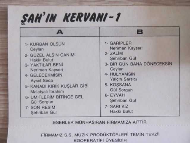 KASET TEMİZ DURUMDA. KABINDA SOLMA VAR SARKI LİSTESİNDEKİ A ve B yüzündeki parçaların 5. şarkılara kadar olanı vardır,zamanında böyle doldurulmuştur,orjinali böyle!!!