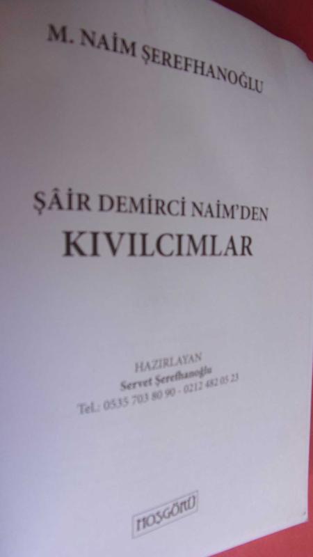 ŞAİR DEMİRCİ NAİM'DEN KIVILCIMLAR, n.naim şerefhanoğlu tarafından kaleme alınmıştır. Kitap 2011 yılında HOŞGÖRÜ YAYINLARI tarafından [İSTANBUL] yayınlanmıştır. 270 sayfadır. ŞAİR DEMİRCİ NAİM'DEN KIVILCIMLAR adlı eser Türkçe dilindedir.