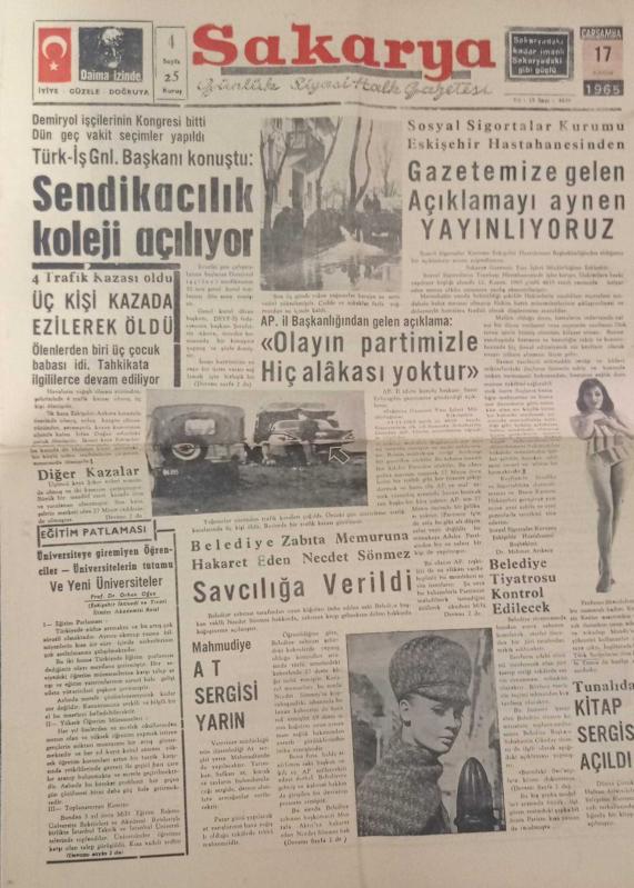 SAKARYA GAZETESİ 17 KASIM 1965- SENDİKACILIK KOLEJİ AÇILIYOR- AHMET, TUNCER VE ALİ MİLLİ KADRODA-, 1 yıl önce satışa sunulmuştur.