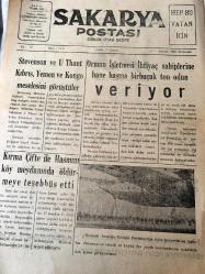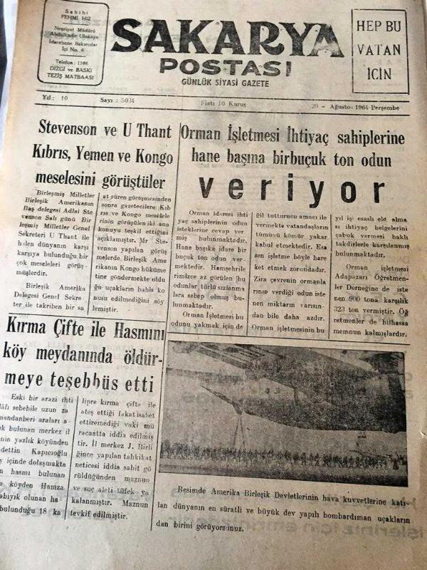 SAKARYA POSTASI SİYASİ GAZETE YEREL TAŞRA BASINI : 20 Ağustos 1964- YIL :10 Sayı :5034-Stevenson ve U Thant Kıbrıs ,Yemen ve Kongo Meselesini Görüştüler - Kırma Çifte İle Hasmını köy meydanında öldürmeye teşebbüs etti - Orman İşletmesi İhtiyaç Sahiplerine Hane Başına Bir Buçuk Ton Odun Veriyor - İlan Tarifesi Yıpranma, sararmalar, kupon kesiği ve yırtılmalar zamana bağlı olarak görülebilir.