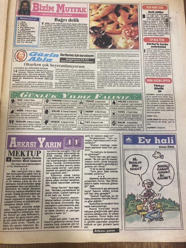 SAKLAMBAÇ GAZETESİ DOĞUM GÜNÜ GAZETESİ - 5 EKİM 1991 - Türkan Şoray-Romy Schneider-Michael Jürgs-Roxette’ten aşk şarkısı-Marky Mark geliyor-Michael Cretu-Dj jazzy-corinne stewart-günün fıkrası-5 yıldızlı otelde aşk alemi-Ömer balıksırtı-Mavi ufuklr-Ornella Pacelli-alberto Dı stefano-Ivan Rassımov-üzüm sağlıktır-ev işi yaparken sırtınız ağrımasın-bizim mutfak-Ergün köknar-Güzin abla-ev hali-Orhan Önal-Arkası yarın-Cem Özer-Marlon Brando-Wang vey hua-Ali Öztürk adlı eser Türkçe dilindedir. Eserin içeriğinde Türkçe dilinde bölümlere de yer verilmektedir.