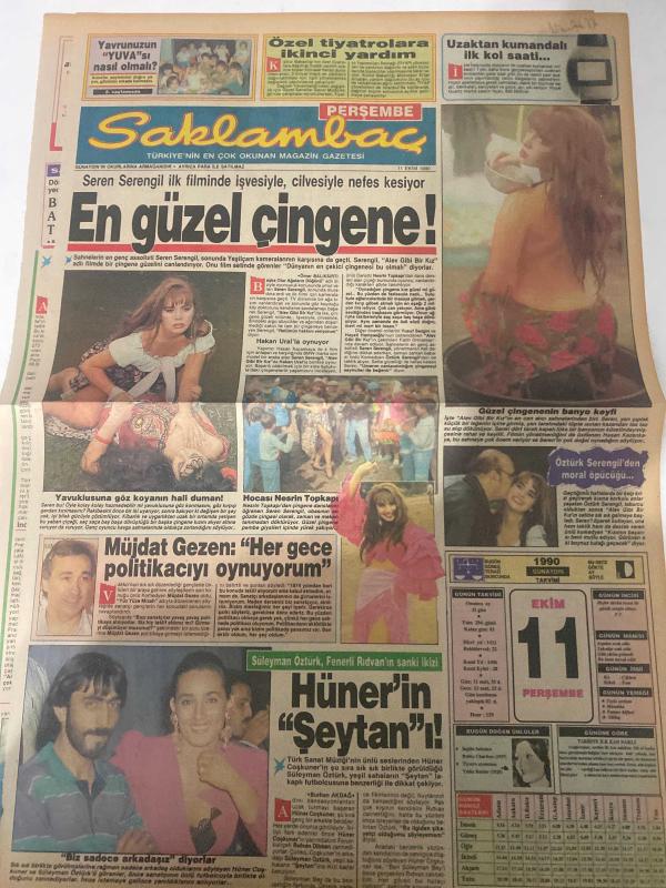 SAKLAMBAÇ GAZETESİ DOĞUM GÜNÜ HEDİYESİ - 11 EKİM 1990 - SADECE 4 SAYFADIR -Seren Serengil - Hakan Ural - Nesrin Topkapı - Müjdat Gezen - Süleyman Öztürk - Hüner Coşkuner - David Hasselhoff - Brandon Call - Sevtap Parman - Şemsi İnkaya - Güzin Abla - Bruce Willis - Nurten Sözen - Faruk Geç - Orhan Ünal - Yakup Kamer - En güzel çingene - Müjdat Gezen: Her gece politikacıyı oynuyorum - Hüner’in şeytanı - Yavrunuz yuvada mutlu olmalı - Mantar pilav - Mini küvetle masaj keyfi - Vücut magnez yumsuz yapamaz - Her yol Roma’ya çıkar - Sahil Güvenlik’in 14’lük yıldızı - Anadolu yollarında - Şemsi İnkaya yakın markajda - Ölüm çemberinde cinayetler zinciri - Gerçek bir yaşam öyküsü - Aşk Fırtınası - Zeynep - Tak-Tak Naci adlı eser Türkçe dilindedir. Eserin içeriğinde Türkçe dilinde bölümlere de yer verilmektedir.