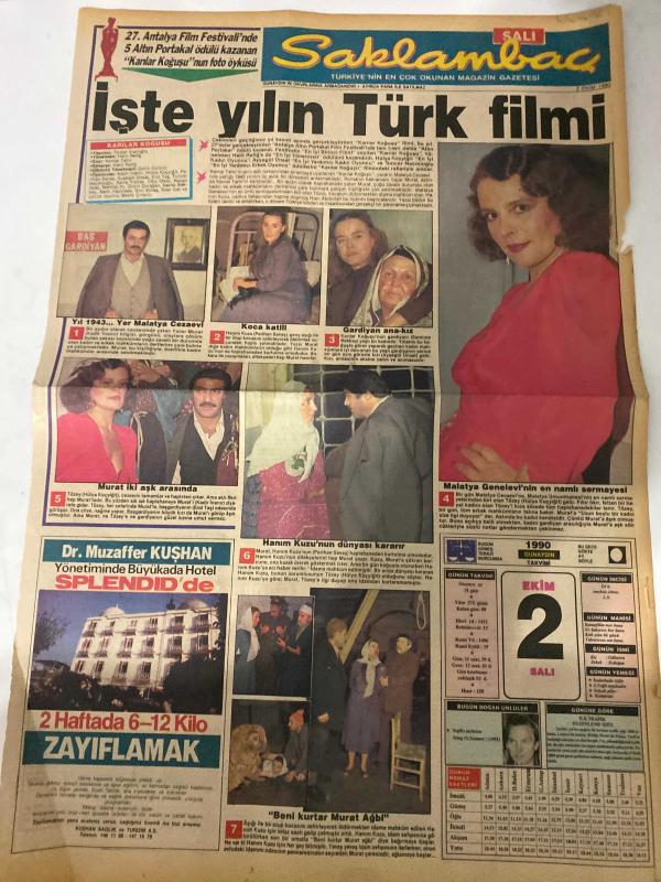 SAKLAMBAÇ GAZETESİ DOĞUM GÜNÜ HEDİYESİ - 2 EKİM 1990 - SADECE 4 SAYFADIR -Aytaç Arman-Nur Sürer-Hülya Koçyiğit-Tuncer Necmioğlu-Orhan Onal-Yakup Kamer-Ergun Konkar-Güzin Abla-Hülya Yiğitlal-Kenny Rogers-George Michael-Ferhan Gürpınar-Muzaffer Kushan-Pelin Batu-Nazmiye Tüzen-Elvan Alkan-Meral Okay-Feride Çiçekoğlu-Ayten Gökçer-Atıf Yılmaz-İşte yılın Türk filmi-Karılar Koğuşu-Sonbahar makyajı-Şu Au-Pair dedikleri-Kakaolu kek-Balayınız zehir olmasın-İpli jimnastikle güzelleşin-Amcanın kızı ile evlenmemen iyi olmuş-At’la gelen sağlık-Michael J. Fox’un dünü bugünü-Salome’un son dansı-Bestecilikte iddialı-Kitap gibi açılan koltuk-Hızlı kaykay-Oğlunu evlendirdi-George Michael’in İzmirli ikizi-Zeynep-Tak-Tak Naci-Aşk Fırtınası adlı eser Türkçe dilindedir. Eserin içeriğinde Türkçe dilinde bölümlere de yer verilmektedir.