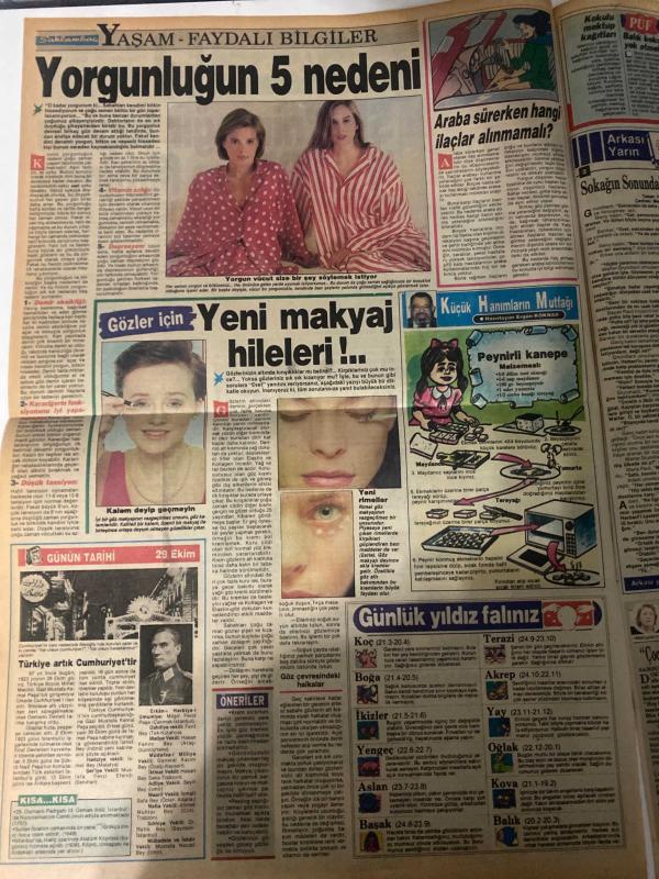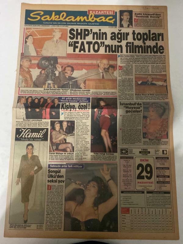 SAKLAMBAÇ GAZETESİ DOĞUM GÜNÜ HEDİYESİ - 29 EKİM 1990 - SADECE 4 SAYFADIR - Erdal İnönü - Fatoş Güney - Zülfü Livaneli - Fikret Hakan - Songül Ülkü - Canan Göztepe - Gönül Paksoy - Hakan Akkaya - Asuman Dabak - Hüseyin Binzet - Nur Binzet - Julie Cantoni - Kayahan - Raquel Welch - Orhan Ünal - Talip Kamer - Fatih Gec - Güzin Abla - Kamil - SHP’nin ağır topları “Fato”nun filminde - Kişiye özel - 40 yıllık modacıdan “Haute Couture” delisi - Sahne’de artık fark ediliyor - Songül Ülkü’den seksi şov - Yorgunluğun 5 nedeni - Yeni makyaj hileleri - Araba sürerken hangi ilaçlar alınmamalı - Günlük yaşam ve görgü kuralları - “Önce siz buyurun, hanımefendi” - Hayatı zindan eden duygu - Körfez krizi buzları eritti - Fransızların Julie Cantoni’si - Kayahan’ın sağ kolundan enstrümantal kaset - Özgürlüğün bedeli 24 milyar - Espri küpü - Kamil “Modu da sanar” - Yılın rengi kırmızı - İstanbul’da huysuz geceler - Tatlı nişanlılık günleri - Çocuğunuz aşırı kıskanç - Türkiye artık Cumhuriyettir - Püf nok adlı eser Türkçe dilindedir. Eserin içeriğinde Türkçe dilinde bölümlere de yer verilmektedir.