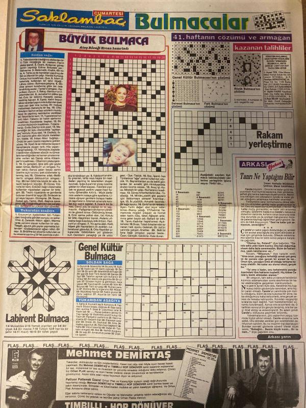 SAKLAMBAÇ GAZETESİ DOĞUM GÜNÜ HEDİYESİ (TURKİSH NEWSPAPER) - 6 EKİM 1990 - TAM TAKIM 8 SAYFADIR - Sibel Girayalp-Ceylan-Kadir İnanır-Derya Tilkioğlu-Beats International-Linda Lewis-Madonna-Adamski-Enver Sedat-Ahu Tuğba-Gökben-Frank Çep-Cengiz Kurtoğlu-Varan-Patronluce Moda eki çizerleri-Fırat Genç-John Derek-Bo Derek-Kenan Işık-Aziz Nesin-Yaşar Ne Yaşar Ne Yaşamaz oyuncuları-Orhan Ünal-Yakup Kamer Anneligi öğreniyorlar-Miník kızlarının üstüne titriyorlar-Güzelliğe ilk adım Lady Sauna-TV reklamlarının son gözdesi-Her telden çalıyor-Madonna’nın son merakı-Adamski iflasla gelen başarı-Rekor kıran plaklar-Kısa örgü ile girelim-İşte kışlık aksesuarlar-Bir ceket örelim-Hedef Altın Portakal-Ahu Tuğba Bangkok yolcusu-Aşk fırtınası-Kabare gülü Mevsimlik-Süveterlerinize adınızı işleyin-Yünlerimizi değerlendirelim adlı eser Türkçe dilindedir.