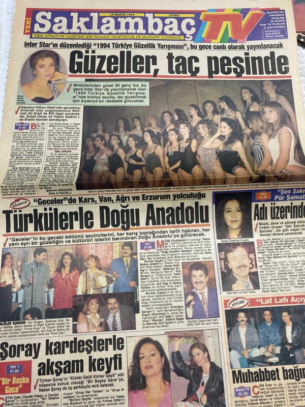 SAKLAMBAÇ TV GAZETESİ DOĞUM GÜNÜ HEDİYESİ - 13 MAYIS 1994 - Inter Starın düzenlediği 1994 Türkiye Güzellik yarışması-Filiz Akın-Sönmez Köksal-Nazan Öncel-Burhan Çaçan-Faruk Tınaz-Yonca Evcimik-Harun Özüakıncı-Fatma Girik-Mehmet Devrim Demir-Menduh Ün-Süreyya Ayhan-Arif Dülger-Ekin Çetin-Zekeriya Ünlü-Hülya Avşar-Nilüfer-Kenan Doğulu-Cem Karaca-İzzet Altınmeşe-Yusuf Güney-Emel Sayın-Nurhan Damcıoğlu-Şoray Uzun-Güzeller taç peşinde-Türkülerle Doğu Anadolu-Adı üzerinde-Şoray kardeşlerle akşam keyfi-Muhabbet bağında-Süper Baba-Geceyarısı Kovboyu-Yalan Rüzgarı-Kültür Sanat-Tiyatro şenliği-Filiz Akın yarın evleniyor-Can çekişen Yeşilçam’da senaryo yarışması-doğum günü hediyesi-sayfa sayısı 4 adlı eser Türkçe dilindedir. Eserin içeriğinde Türkçe dilinde bölümlere de yer verilmektedir.