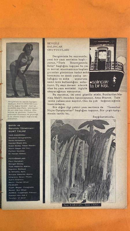 SALINCAK MODERN ERKEĞİN MAGAZİN DERGİSİ - NİSAN 1967 SAYI: 22 — SUAT YALAZ - GIOVANNI SCOGNAMILLO - ZERİYA KARADENİZ - NECDET RÜŞTÜ EFE - SUAVİ SÜALP - YAŞAR KAVDIR - GÜZİN SAYAR - ELİF İNCİ - FERHAN ÜÇOĞLAR - M HASAN GÖKSU - FAZIL DURUKAN - GÜNGÖR ÖZSOY - GEORGE MIHALKE - PATTI HUNTER - MARISA MELL - SHARON TATE - ROMAN POLANSKI - FREDY MAYNE - CATHERINE DENEUVE - SEVDA FERDAĞ - SÜLEYMAN GÜNEY - TANSU SAYIN - TÜRKAN ŞORAY - TAMER YİĞİT - NEBAHAT ÇEHRE - EKREM BORA - PEDİA MUVAHHİT - MODESTY BLAISE - WILLIE GARVIN - KARZ - LIEBMANN - LUICILLE - ROGER SELBY - TARRANT - KIZIL SAÇLI İLAHE - NİÇİN ÖPÜŞÜYORUZ - TÜRK SİNEMASINDA SEKS - SHARON TATE YILI - KATİL VAMPİRLER - REPULSION - SİNEMA VE BEDEN - MODESITY YANINA ÇAĞIRIYOR - AJANLARIN KAMP MACERASI - SİYASİ GERİLİM - TÜRK SİNEMASININ TARİHİ SORUNLARI - ARAP FİLMLERİNİN ETKİSİ - TAM TAKIM - 24 SAYFA, SUAT YALAZ, OĞUZ ÖZDEŞ tarafından kaleme alınmıştır. SALINCAK MODERN ERKEĞİN MAGAZİN DERGİSİ - NİSAN 1967 SAYI: 22 — SUAT YALAZ - GIOVANNI SCOGNAMILLO - ZERİYA KARADENİZ - NECDET RÜŞTÜ EFE - SUAVİ SÜALP - YAŞAR KAVDIR - GÜZİN SAYAR - ELİF İNCİ - FERHAN ÜÇOĞLAR - M HASAN GÖKSU - FAZIL DURUKAN - GÜNGÖR ÖZSOY - GEORGE MIHALKE - PATTI HUNTER - MARISA MELL - SHARON TATE - ROMAN POLANSKI - FREDY MAYNE - CATHERINE DENEUVE - SEVDA FERDAĞ - SÜLEYMAN GÜNEY - TANSU SAYIN - TÜRKAN ŞORAY - TAMER YİĞİT - NEBAHAT ÇEHRE - EKREM BORA - PEDİA MUVAHHİT - MODESTY BLAISE - WILLIE GARVIN - KARZ - LIEBMANN - LUICILLE - ROGER SELBY - TARRANT - KIZIL SAÇLI İLAHE - NİÇİN ÖPÜŞÜYORUZ - TÜRK SİNEMASINDA SEKS - SHARON TATE YILI - KATİL VAMPİRLER - REPULSION - SİNEMA VE BEDEN - MODESITY YANINA ÇAĞIRIYOR - AJANLARIN KAMP MACERASI - SİYASİ GERİLİM - TÜRK SİNEMASININ TARİHİ SORUNLARI - ARAP FİLMLERİNİN ETKİSİ - TAM TAKIM - 24 SAYFA adlı eser Türkçe dilindedir.