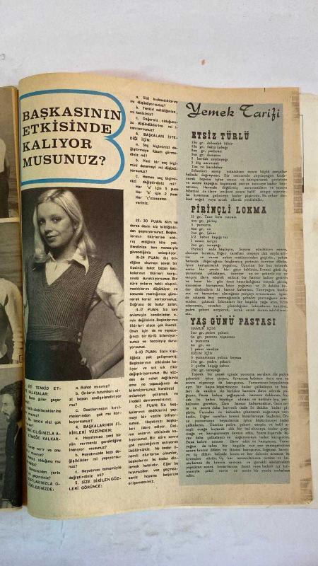SAMANYOLU ELBİSE PATRON İLAVELİ MECMUA DERGİ - 10 MAYIS 1974 – SAYI: 712 HÜLYA DARCAN – TANJU KOREL – MİNE MUTLU – BAHAR ERDENİZ – ZUHAL YORGANCIOĞLU – IRA FÜRSTENBERG – GIULIANO GEMMA – NAZAN ŞORAY – ENGİN ÇAĞLAR – HULKİ SANER – METİN ERKSAN – HALE SOYGAZİ – OKSAL PEKMEZOĞLU – EKREM BORA – HALİT AKÇATEPE – OSMAN ALYANAK – ERKAN YOLAÇ – YILMAZ DURU – TÜRKAN DURU – SABAHAT DURU – MELEK GÖRGÜN – CEMİL UYANIK – ZEYNEP DEĞİRMENCİOĞLU – MEHMET BOZDAĞ – HÜLYA TUĞLU – REFİK HALİT KARAY EVLİLİK HAZIRLIĞI – SAHNEYE GEÇİŞLER – İTALYAN FİLM TEKLİFİ – SAUNA VE ZAYIFLAMA – GAZİNO VE FİLM ÇALIŞMALARI – YENİ FİLM PROJELERİ – YÖNETMENLİĞE GEÇİŞ – SENARYO DEĞİŞİKLİKLERİ – SİNEMA VE SAHNE DENGESİ – KİŞİLİK TESTİ: BAŞKASININ ETKİSİNDE KALIYOR MUSUNUZ? – YEMEK TARİFLERİ: ETSİZ TÜRLÜ, PİRİNÇLİ LOKMA, YAŞ GÜNÜ PASTASI - 36 SAYFA, ERDOĞAN EGELİ tarafından kaleme alınmıştır. Eser UĞUR GÜNERİ editörlüğünde hazırlanmıştır. Kitap CEYLAN YAYINLARI tarafından yayınlanmıştır. 36 sayfadır. SAMANYOLU ELBİSE PATRON İLAVELİ MECMUA DERGİ - 10 MAYIS 1974 – SAYI: 712 HÜLYA DARCAN – TANJU KOREL – MİNE MUTLU – BAHAR ERDENİZ – ZUHAL YORGANCIOĞLU – IRA FÜRSTENBERG – GIULIANO GEMMA – NAZAN ŞORAY – ENGİN ÇAĞLAR – HULKİ SANER – METİN ERKSAN – HALE SOYGAZİ – OKSAL PEKMEZOĞLU – EKREM BORA – HALİT AKÇATEPE – OSMAN ALYANAK – ERKAN YOLAÇ – YILMAZ DURU – TÜRKAN DURU – SABAHAT DURU – MELEK GÖRGÜN – CEMİL UYANIK – ZEYNEP DEĞİRMENCİOĞLU – MEHMET BOZDAĞ – HÜLYA TUĞLU – REFİK HALİT KARAY EVLİLİK HAZIRLIĞI – SAHNEYE GEÇİŞLER – İTALYAN FİLM TEKLİFİ – SAUNA VE ZAYIFLAMA – GAZİNO VE FİLM ÇALIŞMALARI – YENİ FİLM PROJELERİ – YÖNETMENLİĞE GEÇİŞ – SENARYO DEĞİŞİKLİKLERİ – SİNEMA VE SAHNE DENGESİ – KİŞİLİK TESTİ: BAŞKASININ ETKİSİNDE KALIYOR MUSUNUZ? – YEMEK TARİFLERİ: ETSİZ TÜRLÜ, PİRİNÇLİ LOKMA, YAŞ GÜNÜ PASTASI - 36 SAYFA adlı eser Türkçe dilindedir.