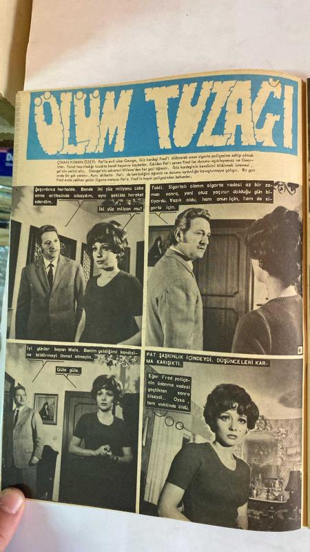 SAMANYOLU ELBİSE PATRON İLAVELİ MECMUA DERGİ - 21 HAZİRAN 1973 – SAYI: 77 TÜRKAN ŞORAY – AJDA PEKKAN – UĞUR DÜNDAR – LEYLA SAYAR – ERTAÇ KASİDECİOĞLU – TANJU OKAN – ESİN AFŞAR – NİLÜFER – MINA – TIMUR SELÇUK – SEVİL HASMAN – VURAL CANTÜRK – BARIŞ MANÇO – GEORGE – FRED – PAT – MİLENA PLAJ MODASI: MAVİ-BEYAZ BİKİNİ VE MAYO – ÇİÇEKLİ BİKİNİLER – KEMERLİ MAYO TASARIMLARI – YAZLIK AKSESUARLAR ROMAN: “ÖLÜM TUZAĞI” – GEORGE’UN TUZAĞI – FRED’İN ŞOKU – SİGORTA GERİLİMİ – POLİÇE VADESİ VE KİMLİK DEĞİŞİMİ SİNEMA: TÜRKAN ŞORAY’IN TV PROGRAMI – LEYLA SAYAR’IN GİZLİ EVLİLİĞİ – HÜLYA KOÇYİĞİT & TARIK AKAN FİLM HAZIRLIĞI – AJDA PEKKAN’IN PARİS MÜZİK KARİYERİ – GÜLGÜN ERDEM’İN BEBEK KOLEKSİYONU MÜZİK: AJDA PEKKAN & UĞUR DÜNDAR AŞKI – ESİN AFŞAR’IN İLK PLAKLARI – NİLÜFER’İN YÜKSELİŞİ – EUROVISION ŞARKI HAZIRLIĞI – TIMUR SELÇUK’UN LP PROJESİ – SEVİL HASMAN’IN YENİ DÖNEMİ – BARIŞ MANÇO İLE ANADOLU TURNESİ - 36 SAYFA, ERDOĞAN EGELİ tarafından kaleme alınmıştır. Eser UĞUR GÜNERİ editörlüğünde hazırlanmıştır. Kitap CEYLAN YAYINLARI tarafından yayınlanmıştır. 36 sayfadır. SAMANYOLU ELBİSE PATRON İLAVELİ MECMUA DERGİ - 21 HAZİRAN 1973 – SAYI: 77 TÜRKAN ŞORAY – AJDA PEKKAN – UĞUR DÜNDAR – LEYLA SAYAR – ERTAÇ KASİDECİOĞLU – TANJU OKAN – ESİN AFŞAR – NİLÜFER – MINA – TIMUR SELÇUK – SEVİL HASMAN – VURAL CANTÜRK – BARIŞ MANÇO – GEORGE – FRED – PAT – MİLENA PLAJ MODASI: MAVİ-BEYAZ BİKİNİ VE MAYO – ÇİÇEKLİ BİKİNİLER – KEMERLİ MAYO TASARIMLARI – YAZLIK AKSESUARLAR ROMAN: “ÖLÜM TUZAĞI” – GEORGE’UN TUZAĞI – FRED’İN ŞOKU – SİGORTA GERİLİMİ – POLİÇE VADESİ VE KİMLİK DEĞİŞİMİ SİNEMA: TÜRKAN ŞORAY’IN TV PROGRAMI – LEYLA SAYAR’IN GİZLİ EVLİLİĞİ – HÜLYA KOÇYİĞİT & TARIK AKAN FİLM HAZIRLIĞI – AJDA PEKKAN’IN PARİS MÜZİK KARİYERİ – GÜLGÜN ERDEM’İN BEBEK KOLEKSİYONU MÜZİK: AJDA PEKKAN & UĞUR DÜNDAR AŞKI – ESİN AFŞAR’IN İLK PLAKLARI – NİLÜFER’İN YÜKSELİŞİ – EUROVISION ŞARKI HAZIRLIĞI – TIMUR SELÇUK’UN LP PROJESİ – SEVİL HASMAN’IN YENİ DÖNEMİ – BARIŞ MANÇO İLE ANADOLU TURNESİ - 36 SAYFA adlı eser Türkçe dilindedir.