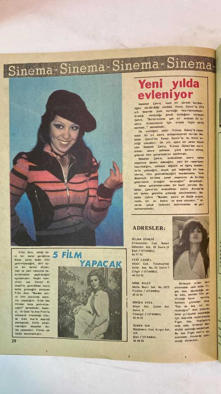 SAMANYOLU ELBİSE PATRON İLAVELİ MECMUA DERGİ - 3 OCAK 1974 — SAYI: 105 MICHELA ROC - FRANCO GASPARI - WILLIAM - PRISCILLA - GONTRAN - KOMİSER SIMPSON - ALİ KOCATEPE - ASU MARALMAN - ORHAN ŞEVKİ - LALE AKAT - SELÇUK URAL - NILÜFER - AYLA ALGAN - AYTEN ALPMAN - ÖMÜR GÖKSEL - BARIŞ MANÇO - EROL EVGİN - ŞANAR YURDATAPAN - FÜSUN ÖNAL - TANJU OKAN - ŞENAY - ŞERİF YÜZBAŞIOĞLU - ÜÇ HÜREL - METİN ÇOTAL - LOS ARRIBENOZ - SÜHEYL DENİZCİ - ERKAN ÖZERMAN - NEBAHAT ÇEHRE - YAVUZ DEMİR - YILMAZ GÜNEY - FİLİZ AKIN - EDİZ HUN - MUZAFFER ASLAN - SELMA GÜNERİ - FERİ CANSEL - MİNE SOLEY - BİRSEN AYDA - SEMRA SAR - FİGEN HAN - YILINIZ KUTLU OLSUN - KAYBOLAN KIZLAR - FOTO-ROMAN ÖZETİ - RESSAM GONTRAN - KASABA TAKİBİ - DEĞİŞİK SHOW MİZANSENİ - SANATÇI PORTRESİ: LALE AKAT - 1973’ÜN SANATÇILARI - PLAK SATIŞLARI - YILIN ŞARKISI: DÜNYA DÖNÜYOR - MÜZİK DÜNYASINDAN KISA HABERLER - SAHNE VE PLAK GELİŞMELERİ - GAZİNO PROGRAMLARI - YURTDIŞI KONSERLERİ - SİNEMA - NEBAHAT ÇEHRE’NİN EVLİLİK HAZIRLIĞI - 36 SAYFA adlı eser, Kitap > Süreli Yayınlar > Dergiler > Magazin, Moda kategorisinde İkinci El olarak satıştadır.