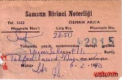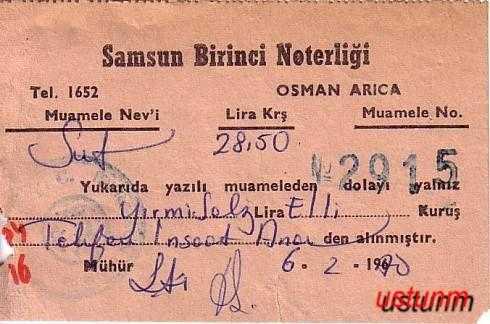 ** SAMSUN BİRİNCİ NOTERLİĞİ MAKBUZU ** 28 lira 50 kuruşluk noter makbuzudur...