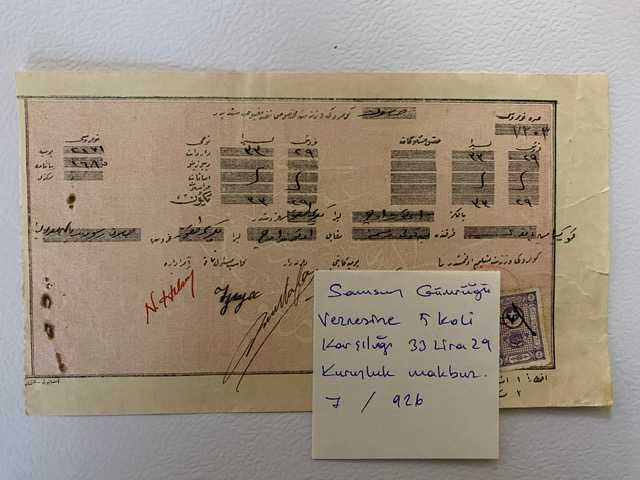 Samsun Gümrüğü Vezne Makbuzu Çeviri: Bilge Çevikkan