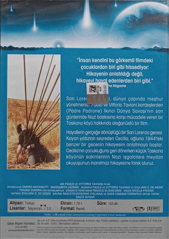 SAN LORENZO GECESİ DVD FİLM ORJİNAL 2.EL DVD ( 9208, en son 5 ay önce güncellenmiştir.