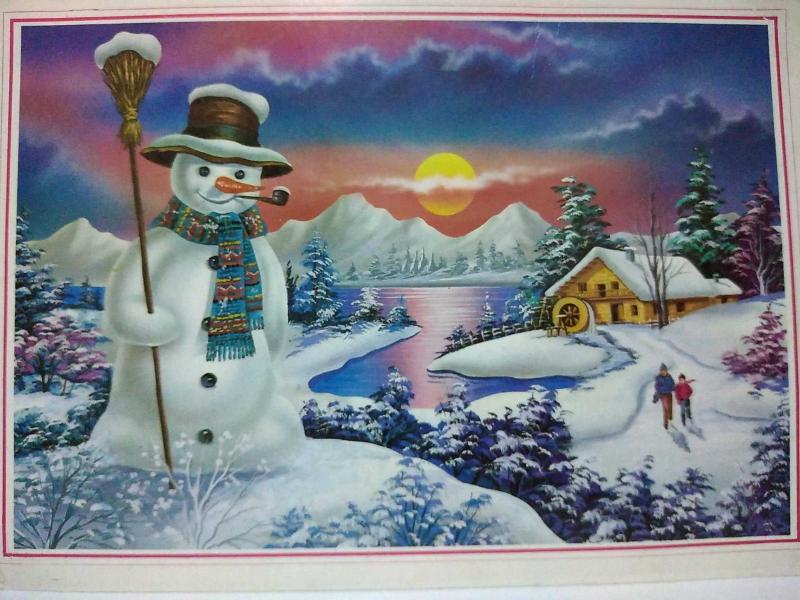 SANAT KARTPOSTALI-KARLAR ALTINDA ESKİ DEĞİRMEN VE KARDAN ADAM RESMİ,ARKASINA YAZILMAMIŞ,RENKLİ,12 X 17 CM EBADINDA, en son 8 ay önce güncellenmiştir.
