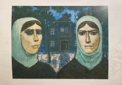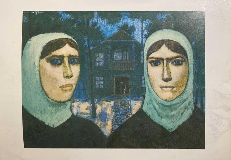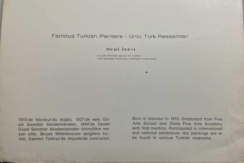 SANAT KARTPOSTALI-NURİ İYEM TARAFINDAN ÇİZİLMİŞ EVLERİ ÖNÜNDE DURAN ŞİLELİ İKİ KADIN RESMİ,İÇ KISMINA YAZILMAMIŞ,KAPAKLI,RENKLİ, 13 X 17 CM EBADINDA, en son 8 ay önce güncellenmiştir.