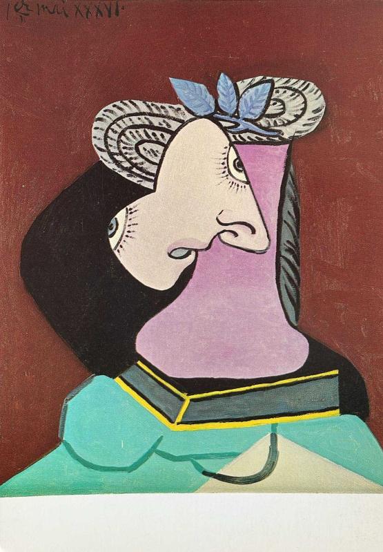 SANAT KARTPOSTALI-PABLO PICASSO'UN MAVİ YAPRAKLI HASIR ŞAPKA RESMİ,ARKASINA YAZILMAMIŞ, RENKLİ, en son 8 ay önce güncellenmiştir.