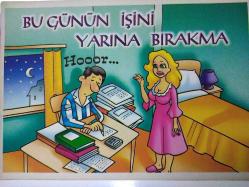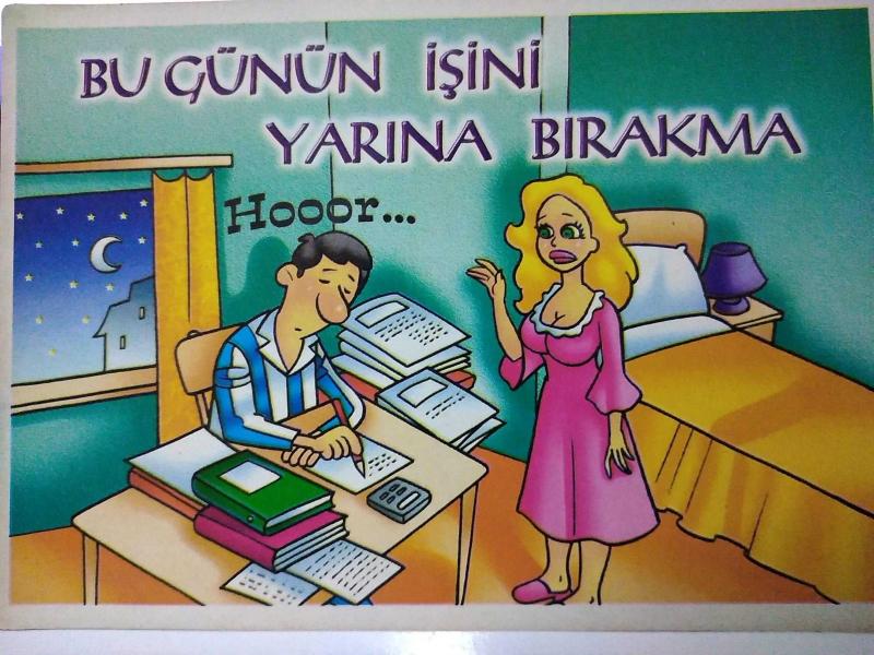 SANAT KARTPOSTALI-ÜSTÜNDE ''BUGÜNÜN İŞİNİ YARINA BIRAKMA'' YAZAN ÇALIŞAN ADAM VE EŞİ KARİKATÜRÜ,ARKASINA YAZILMAMIŞ,RENKLİ, 12 X 17 CM EBADINDA, en son 8 ay önce güncellenmiştir.