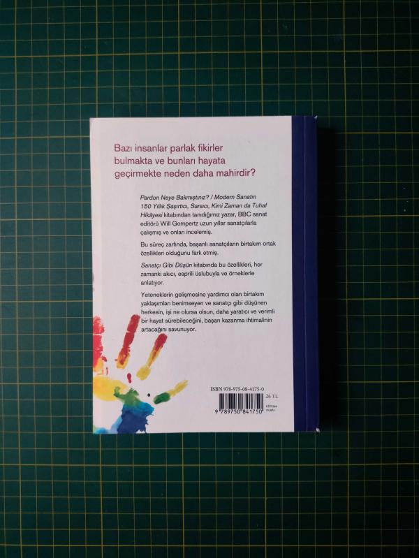 SANATÇI GİBİ DÜŞÜN ... ve Daha Yaratıcı, Daha Verimli Bir Hayata Kavuş, Will Gompertz tarafından kaleme alınmıştır. Kitap 2019 yılında Yapı Kredi Yayınları tarafından [Türkiye - İstanbul] 9789750841750 ISBN kodu ile yayınlanmıştır. Bu baskının çevirisi Süreyyya Evren tarafından yapılmıştır. 208 sayfadır. SANATÇI GİBİ DÜŞÜN ... ve Daha Yaratıcı, Daha Verimli Bir Hayata Kavuş adlı eser Türkçe dilindedir.