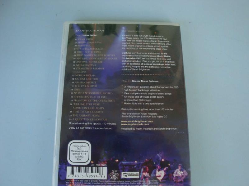 SARAH BRIGHTMAN " The Harem World Tour: Live From Las Vegas " DVD ( PAL ) - 2004 E. U. BASKI ( POP ) DVD ALBÜM, en son 8 ay önce güncellenmiştir.
