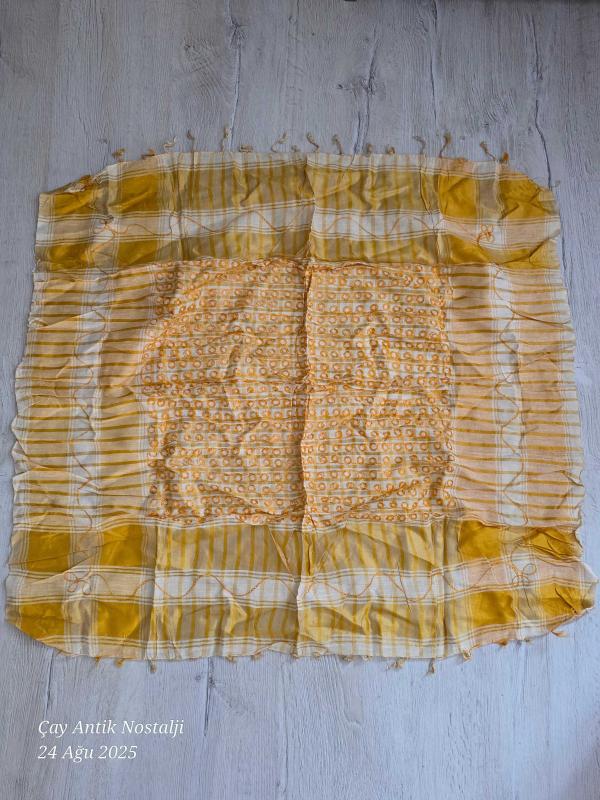 SARI RENK Etnik Otantik Puşi kefiye 90x90 cm kullanılmamış başlıklı antika/koleksiyon objesinin menşei belirtilmemiştir. Objenin ait olduğu dönem bilinmeketedir.