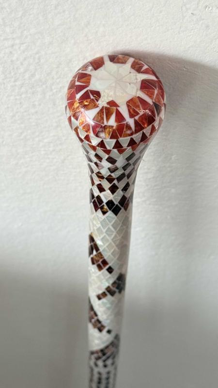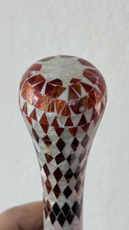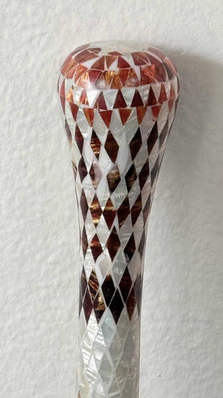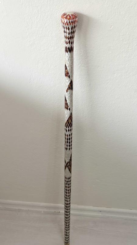 Çok aykırı çok nadir çıkabilecek temizlikte hata kusur yok tamamı el işi Sedef kehribar işlemeli masif ceviz ağacı koleksiyonluk dönem 95 santimetre boyunda Baston 🦯 kusursuz tertemiz