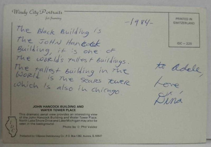 ŞEHİR KARTPOSTALI-ABD/CHICAGO YUKARIDAN ŞEHİR JOHN HANCOCK BİNASI VE SU KULESİ GÜNDÜZ GÖRÜNTÜSÜ,ARKASINA YAZILMIŞ,RENKLİ, 11 X 15 CM EBADINDA - 1950'LER, 1960'LAR, 1970'LER, 1980'LER, 1 yıl önce satışa sunulmuştur.