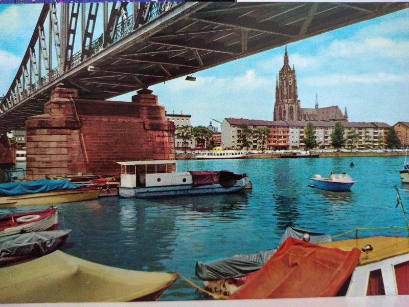 ŞEHİR KARTPOSTALI-ALMANYA/FRANKFURT DENİZ BALIKÇI TEKNELERİ VE ŞEHİR GÖRÜNTÜSÜ,ARKASINA YAZILMIŞ,RENKLİ, 11 X 15 CM EBADINDA - 1950'LER, 1960'LAR, 1970'LER, 1980'LER, en son 8 ay önce güncellenmiştir.